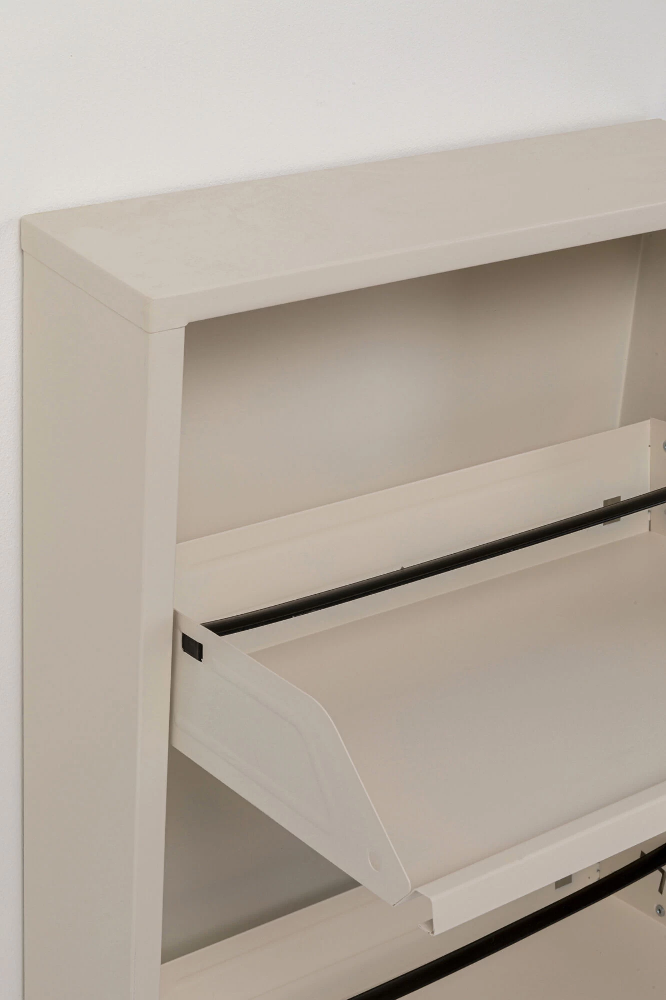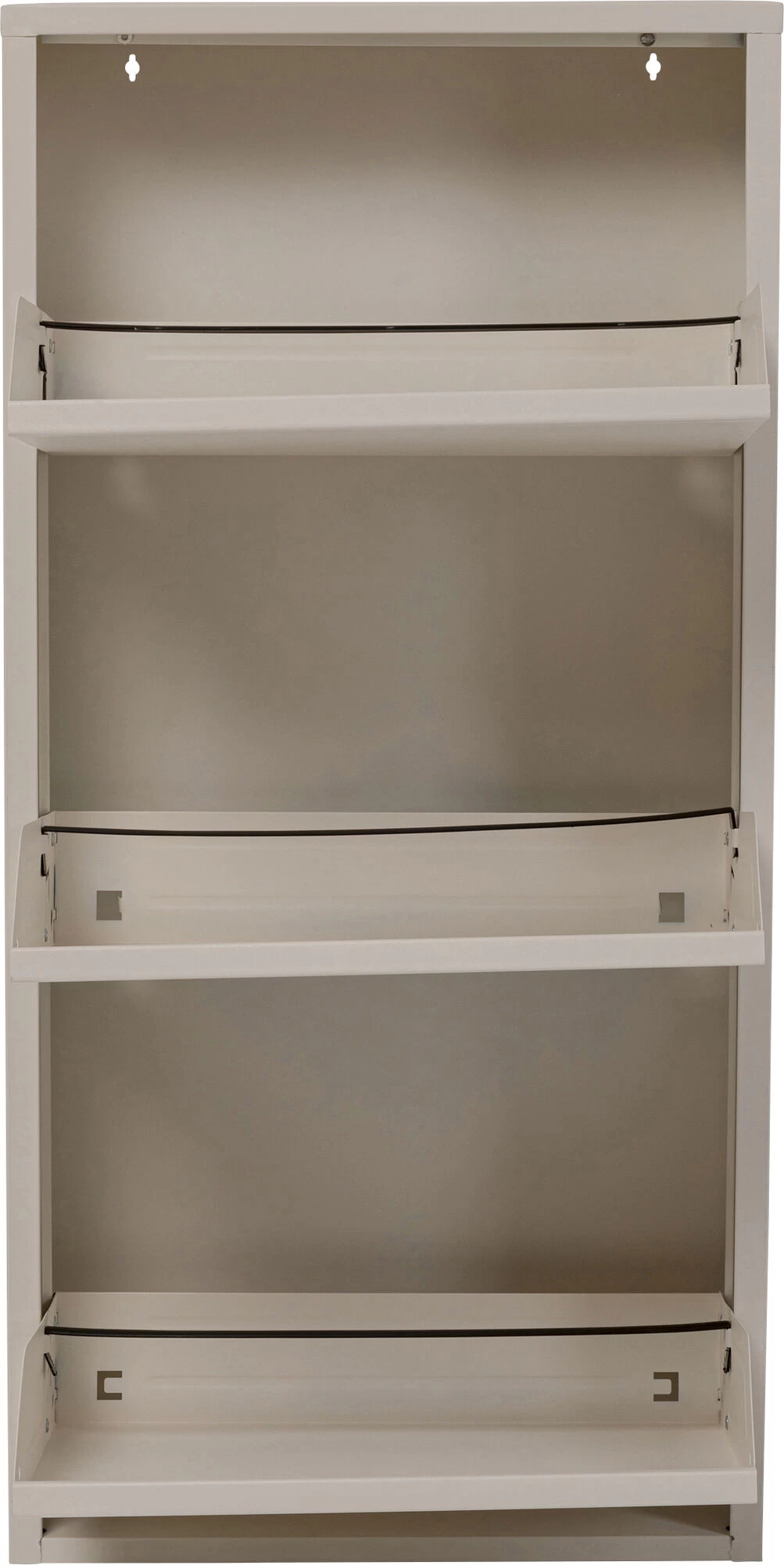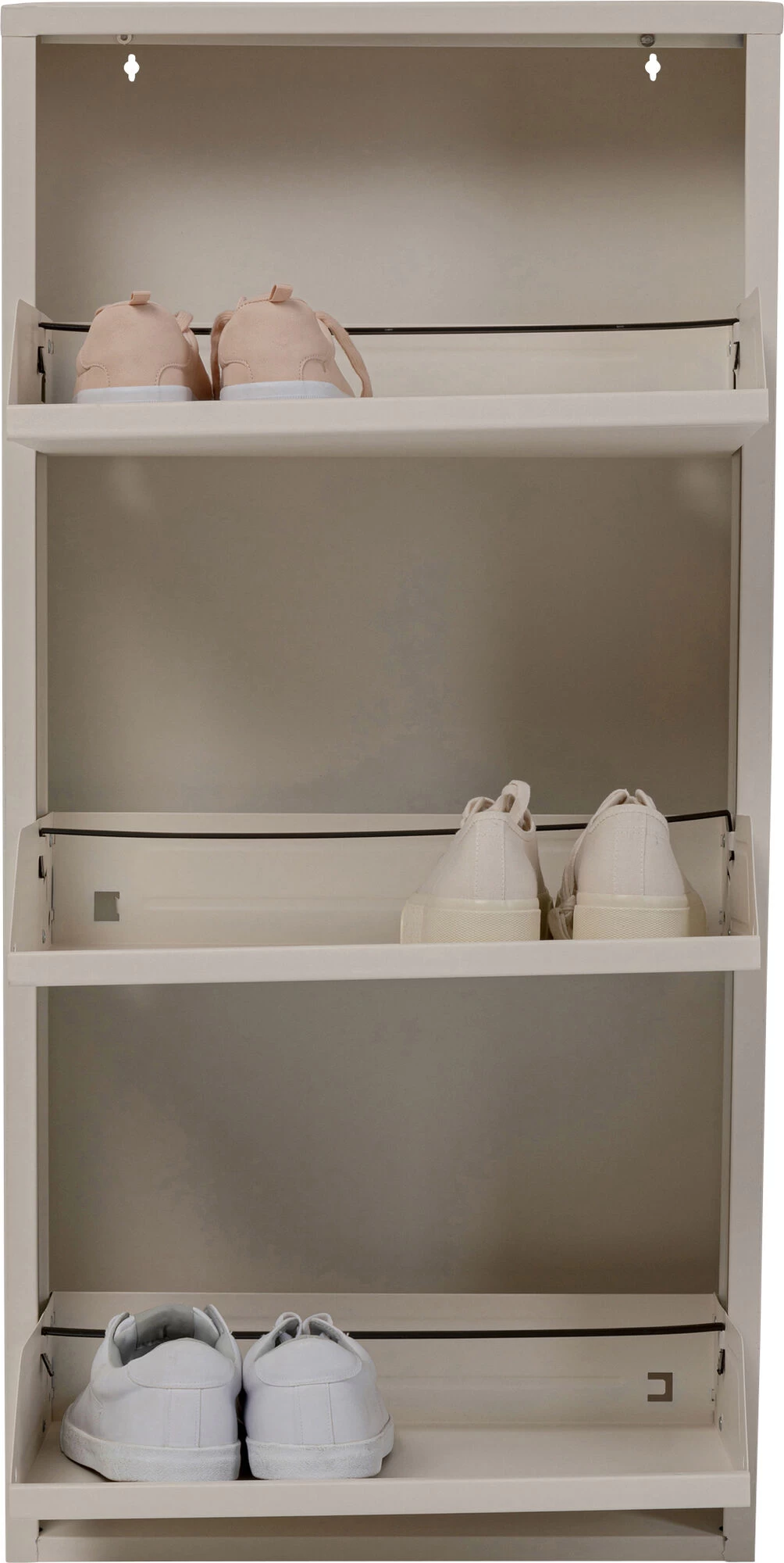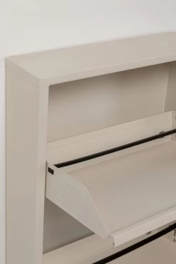 - Praktischer, creme farbener Schuhschrank mit drei Kippfächern