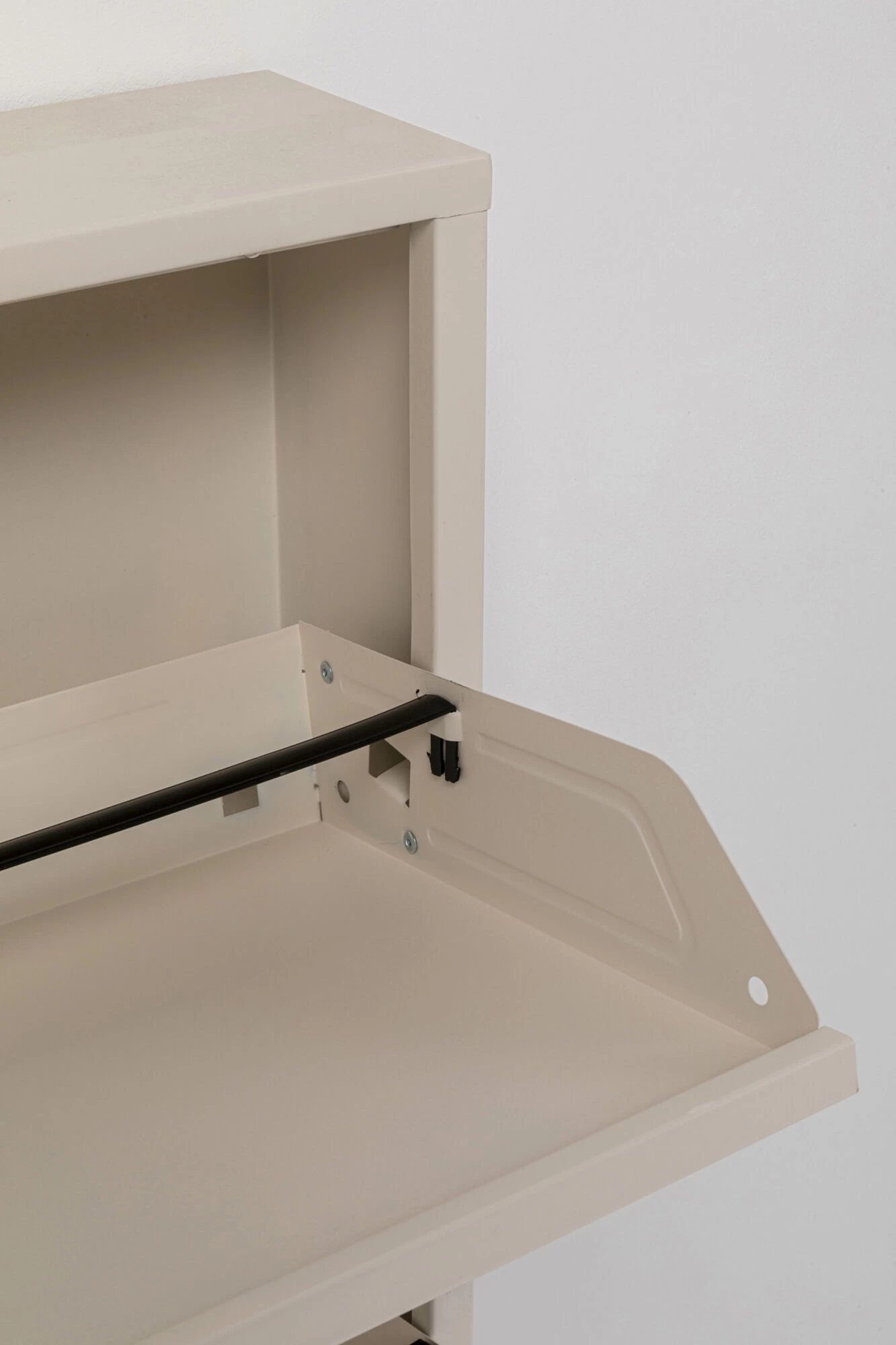 - Dank glatter Fronten und geringer Tiefe macht sich der Schuhkipper nahezu unsichtbar