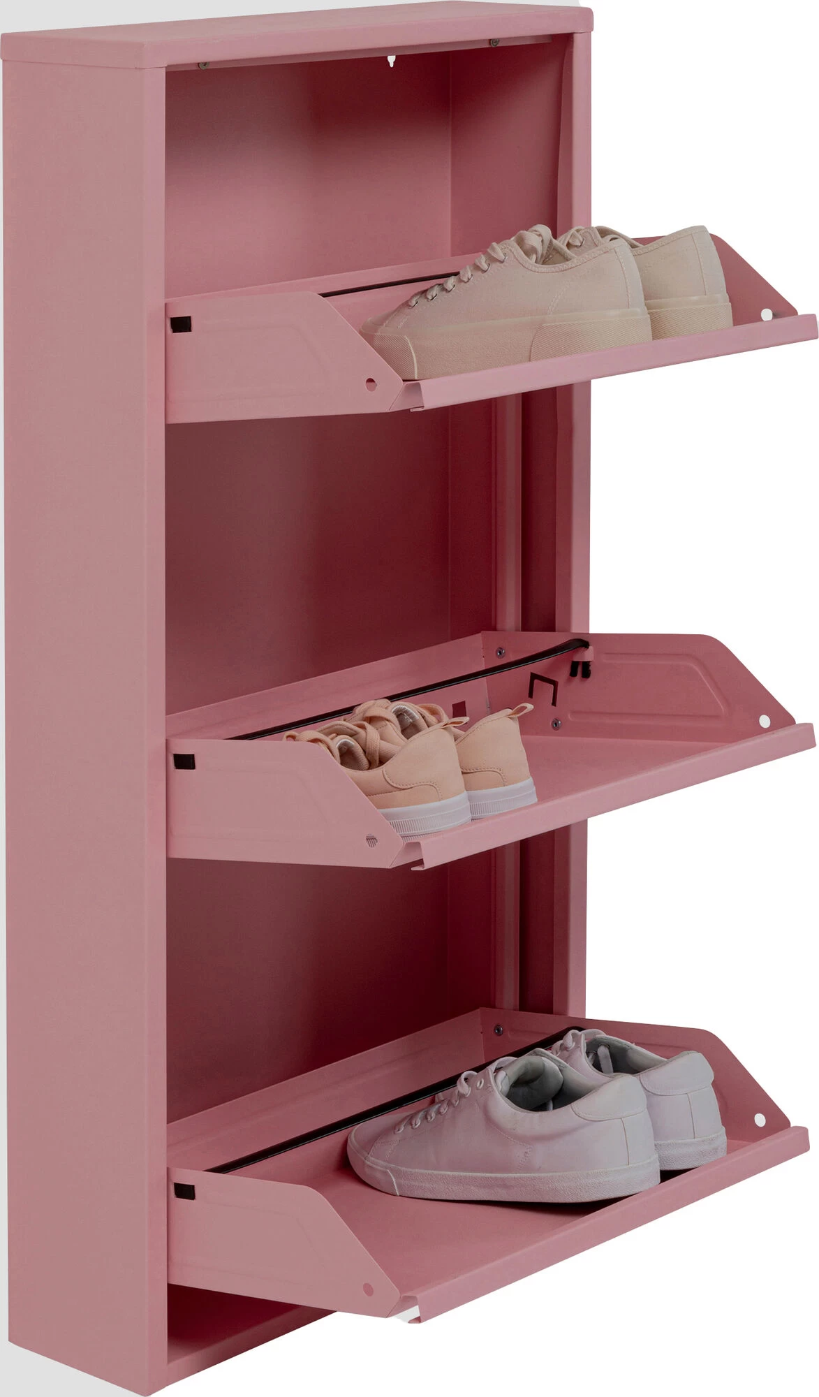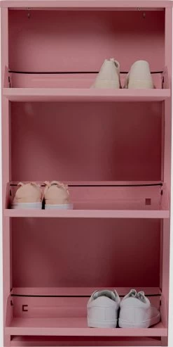- Praktischer, rosa farbener Schuhschrank mit drei Kippfächern