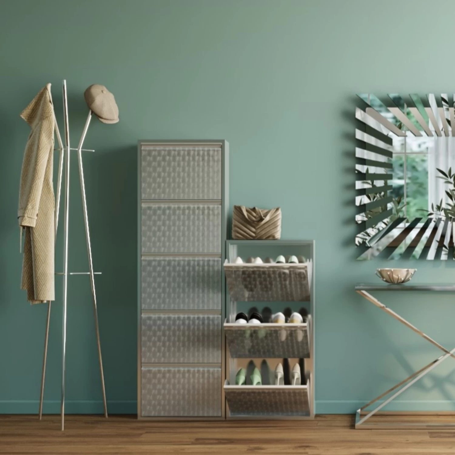 - Smarter Stauraum! Hoher und besonders flacher Schuhschrank mit fünf praktischen Kippfächern