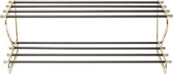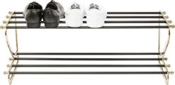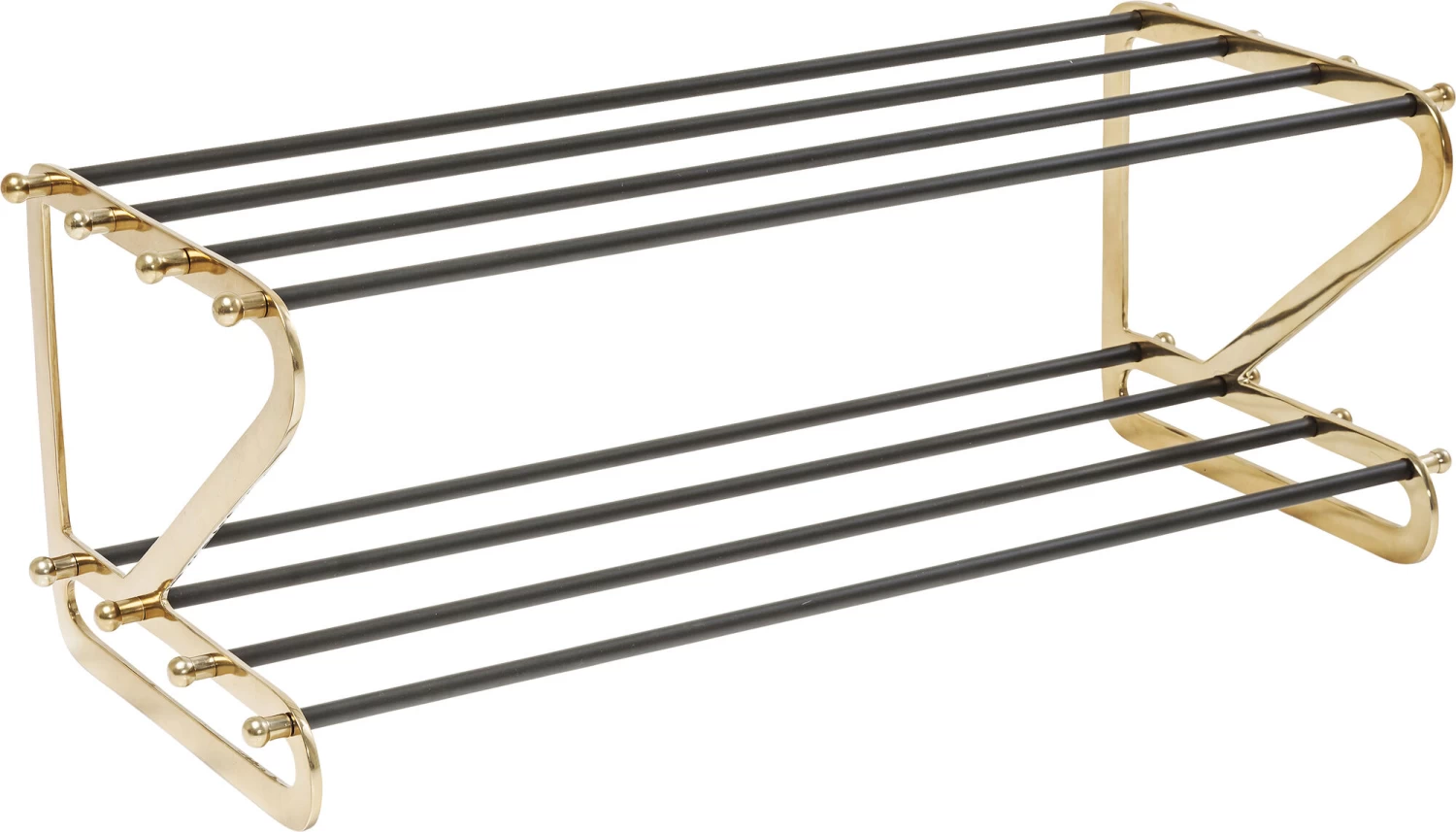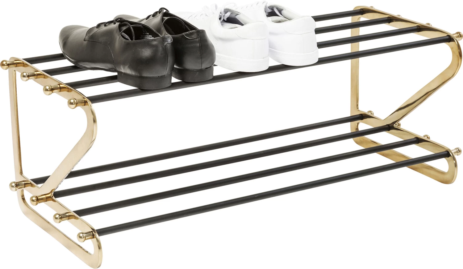 - Schuhregal aus Stahl mit Glam-Faktor, lackiert in Schwarz und Gold und mit hĂĽbschen Zierelementen