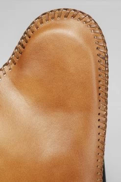- Abnehmbarer Bezug in hellem Cognac-Braun mit attraktiver Ziernaht aus erstklassigem Napa-BĂĽffelleder
