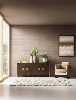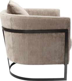 - Moderner Sessel in Beige mit weichem, edel strukturiertem Bezugsstoff, durchgehender Arm- und RĂĽckenlehne und schwarzem Edelstahl-Gestell