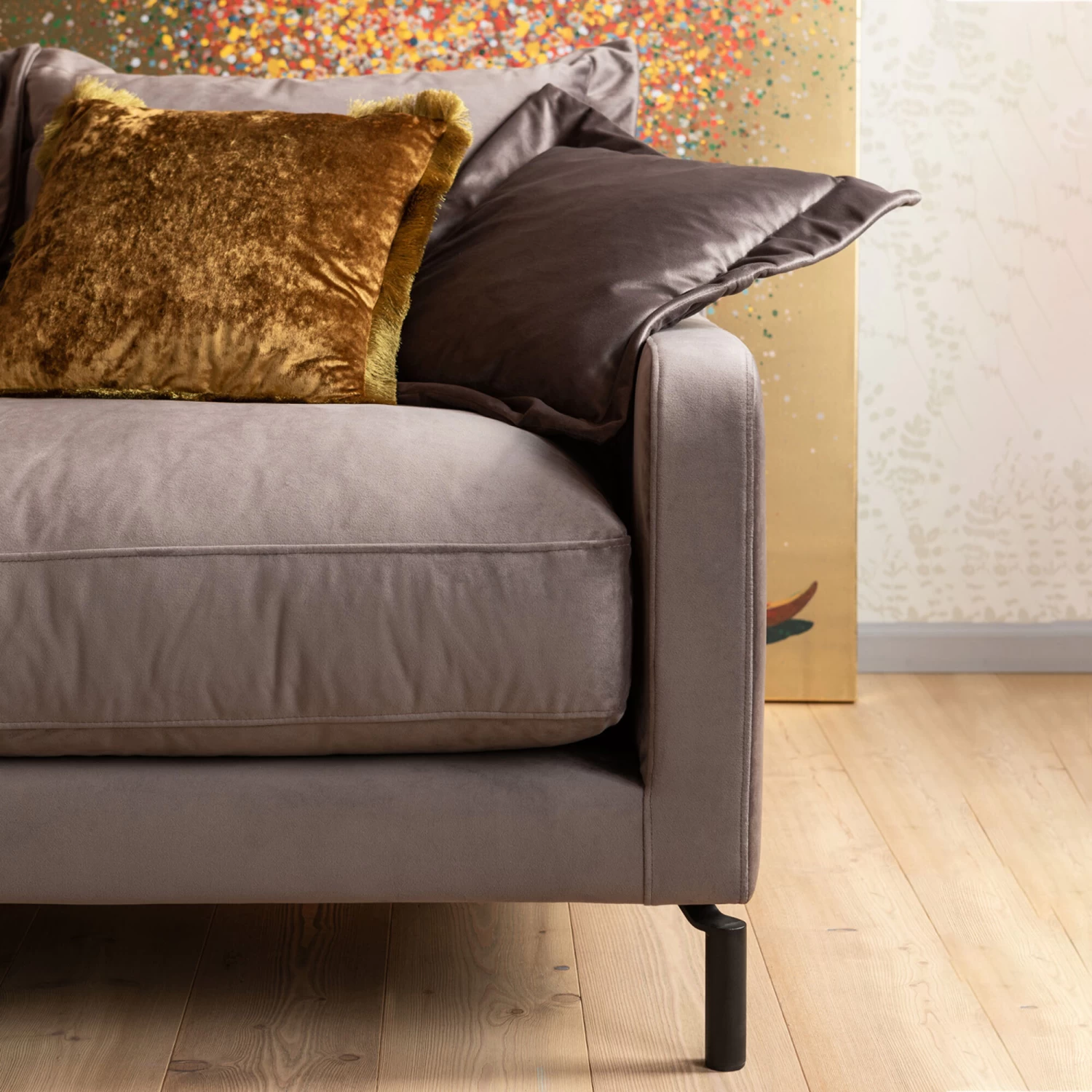 - Aktueller Klassiker: Sitzen de luxe im edel Taupe farbenen Samtsessel aus der Polsterserie Lullaby – fĂĽr Entspannung mit Style