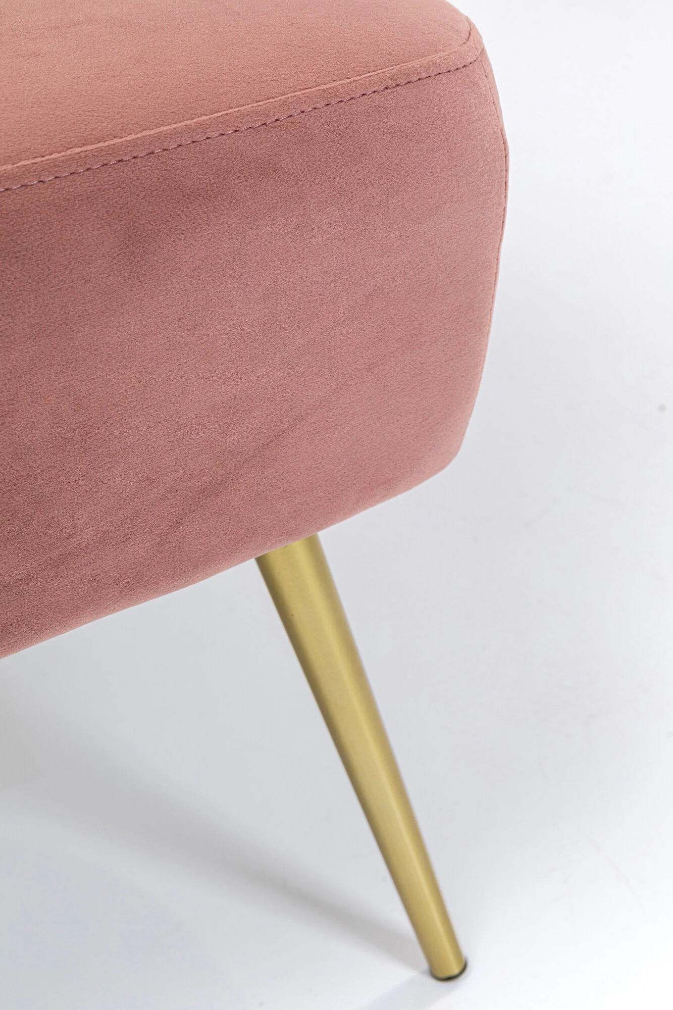 - Voll gepolsterter, kleiner Cocktailsessel in rosa Samtoptik mit messingfarbenen, leicht ausgestellten Beinen