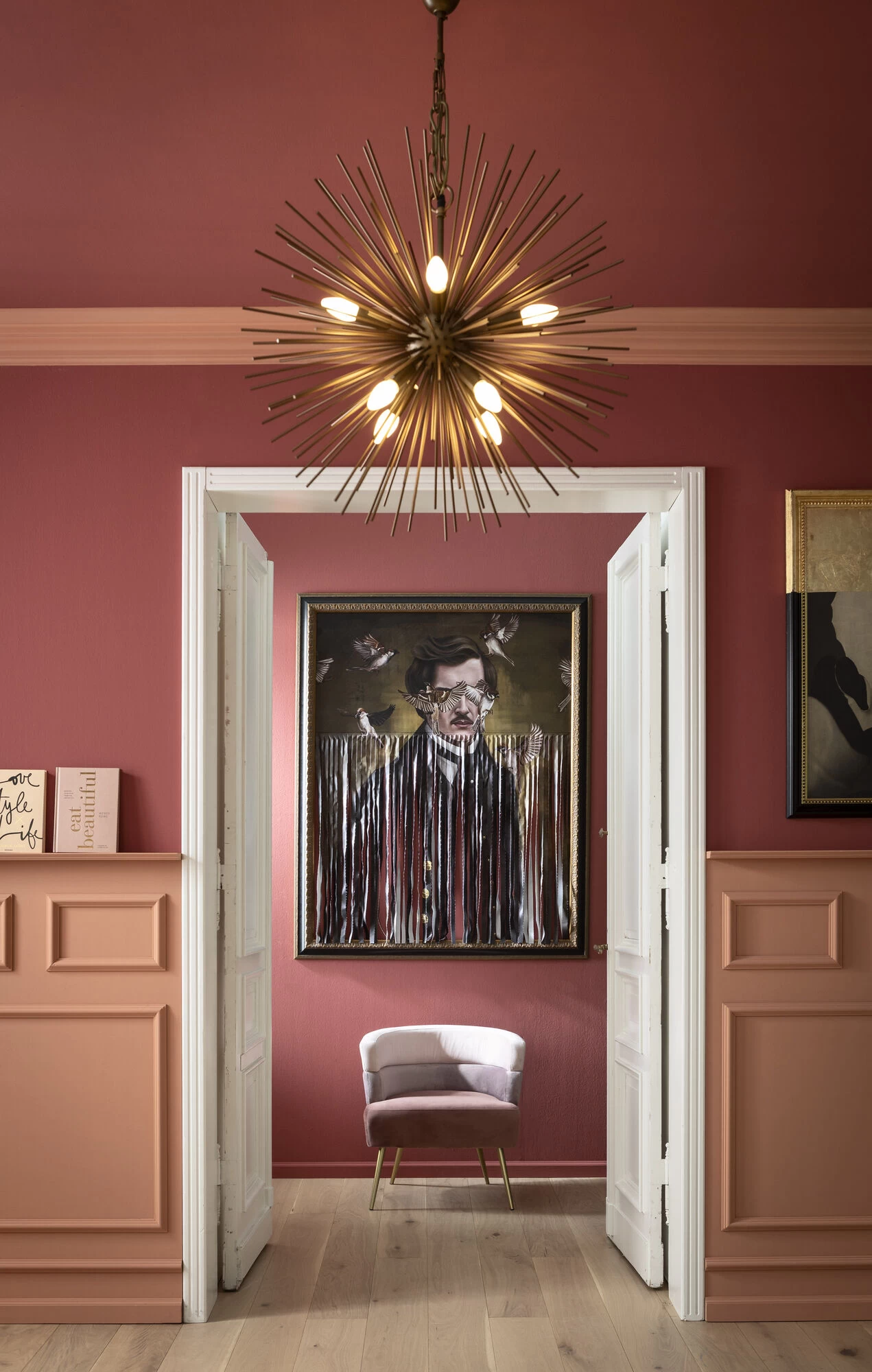 - Die drei abgestuften Rosa-Töne der Polster und die zweigeteilte Rückenlehne verleihen diesem Lounge-Sessel seinen besonderen Designfaktor