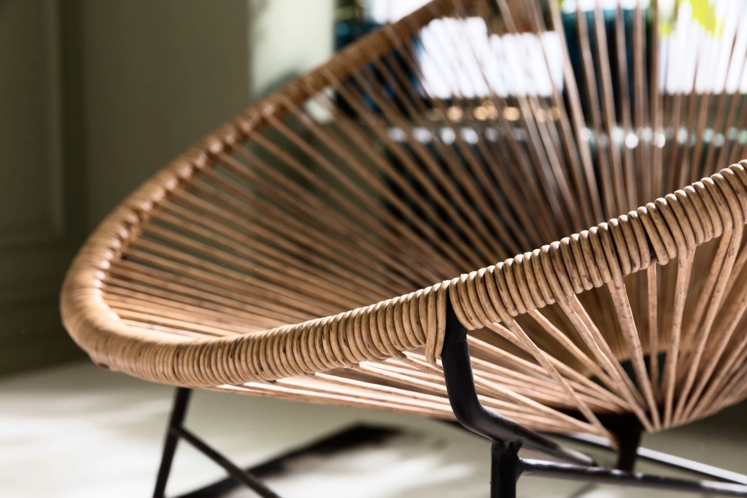 - Outdoor-geeigneter Designersessel in Natur mit schwarzem Gestell, fĂĽr Terrasse, Garten und Balkon