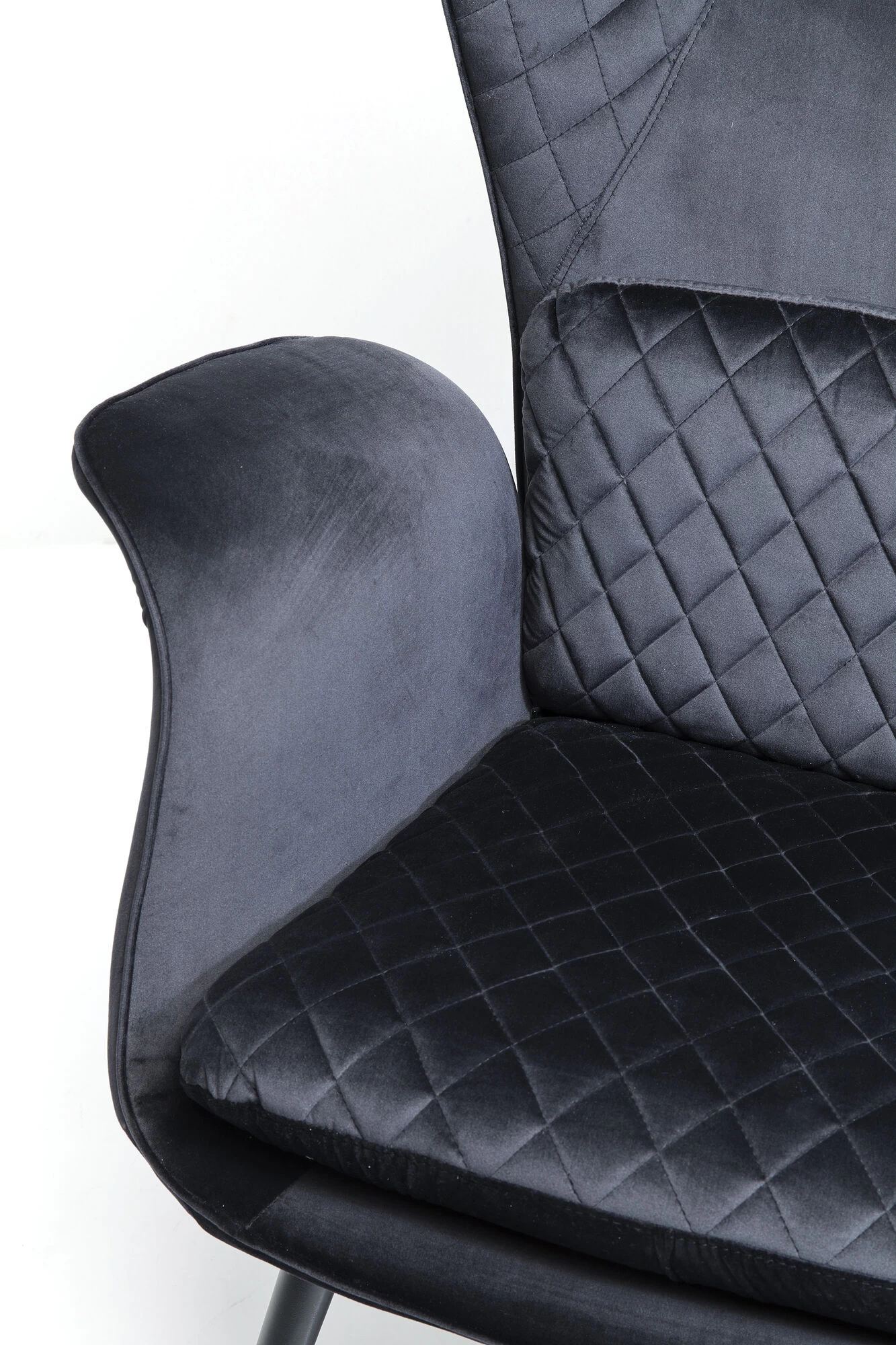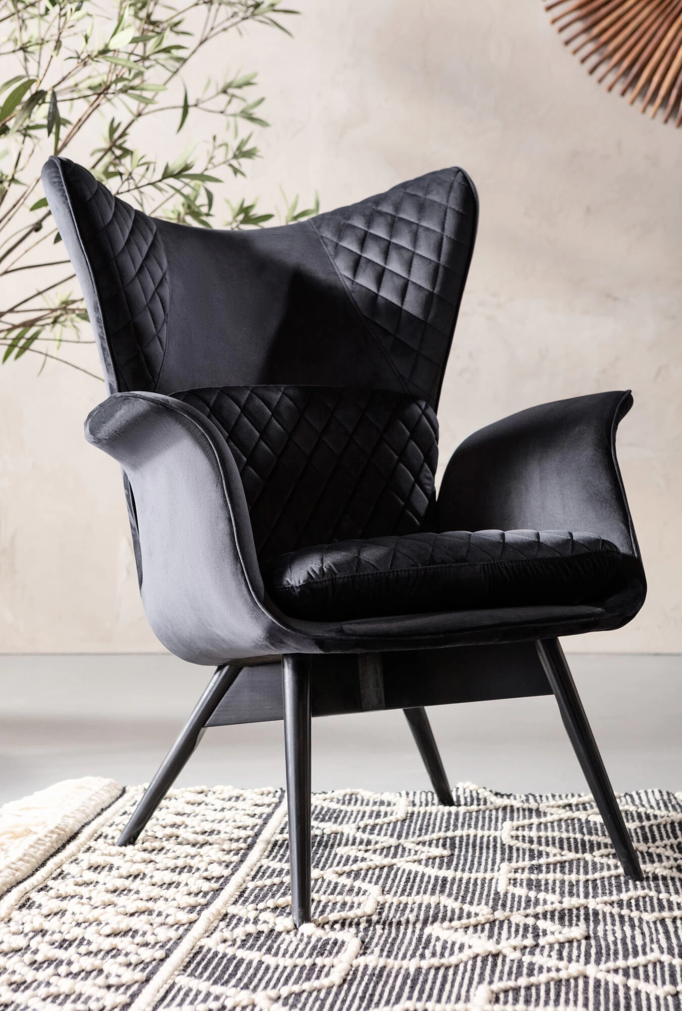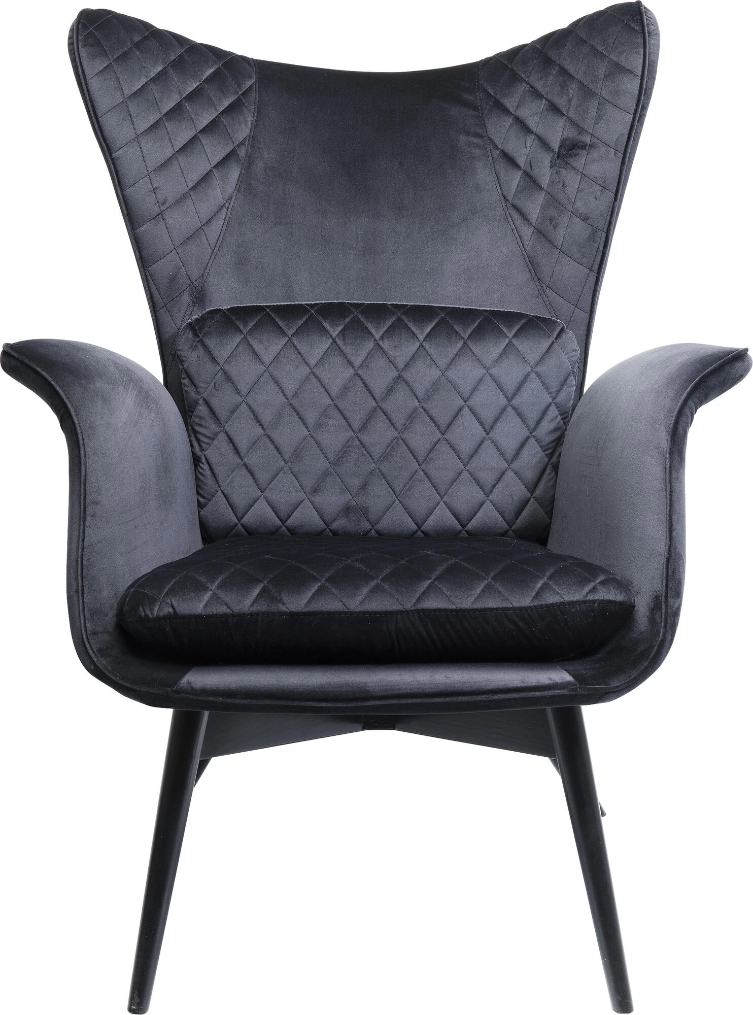 - Luxuriöser und komfortabler Samtsessel mit hohem Rückenteil, breiten Armlehnen und schwungvoller Silhouette – so geht Ohrensessel heute!