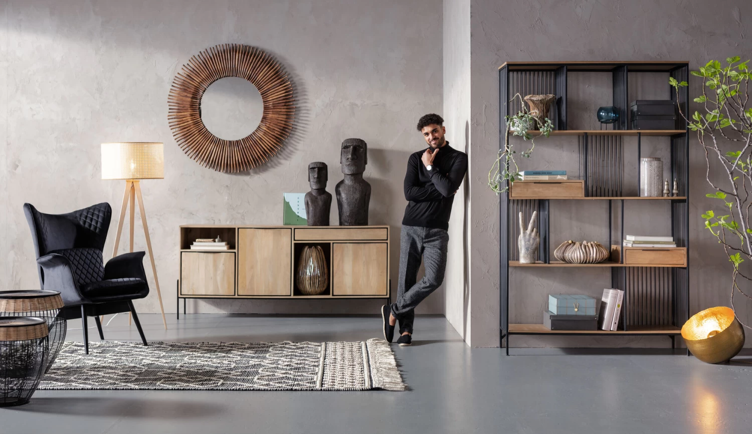 - Lebendige Farbspiele: Der samtige Bezug schimmert je nach Lichteinfall in Schwarz bis Anthrazit-Grau. Tudor ist auch in Blau erhältlich