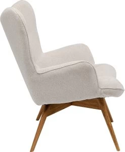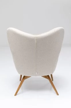 - Beiger Ohrensessel mit Beinen aus massivem Eichen-Holz