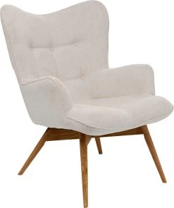 - Beiger Ohrensessel mit Beinen aus massivem Eichen-Holz