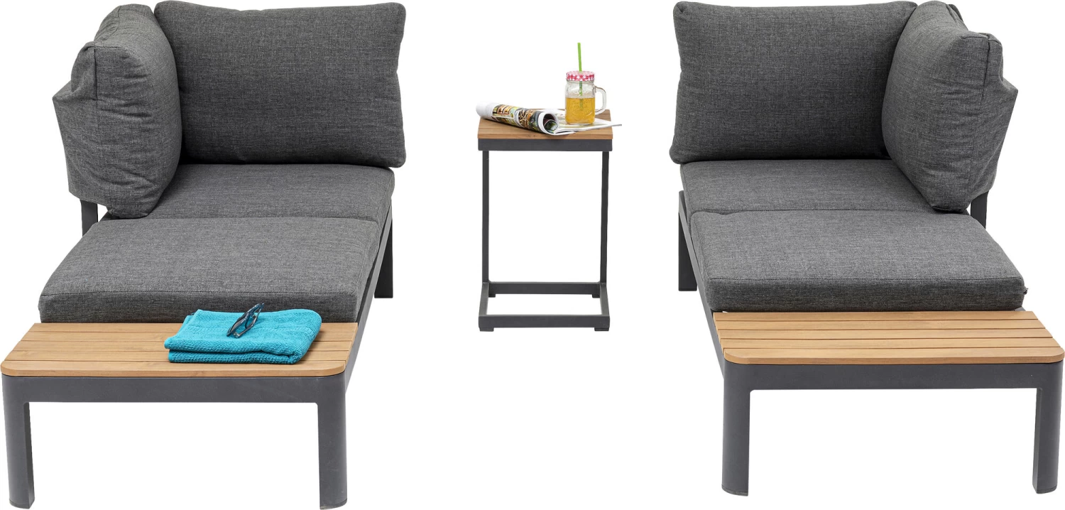 - Erfüllt alle Sommerträume, denn die beiden Ablagen und der mobile Beistelltisch bieten jede Menge Platz für Drinks, Snacks und die Sonnencreme