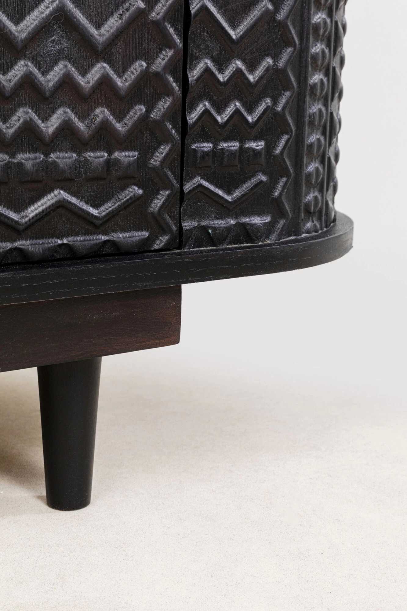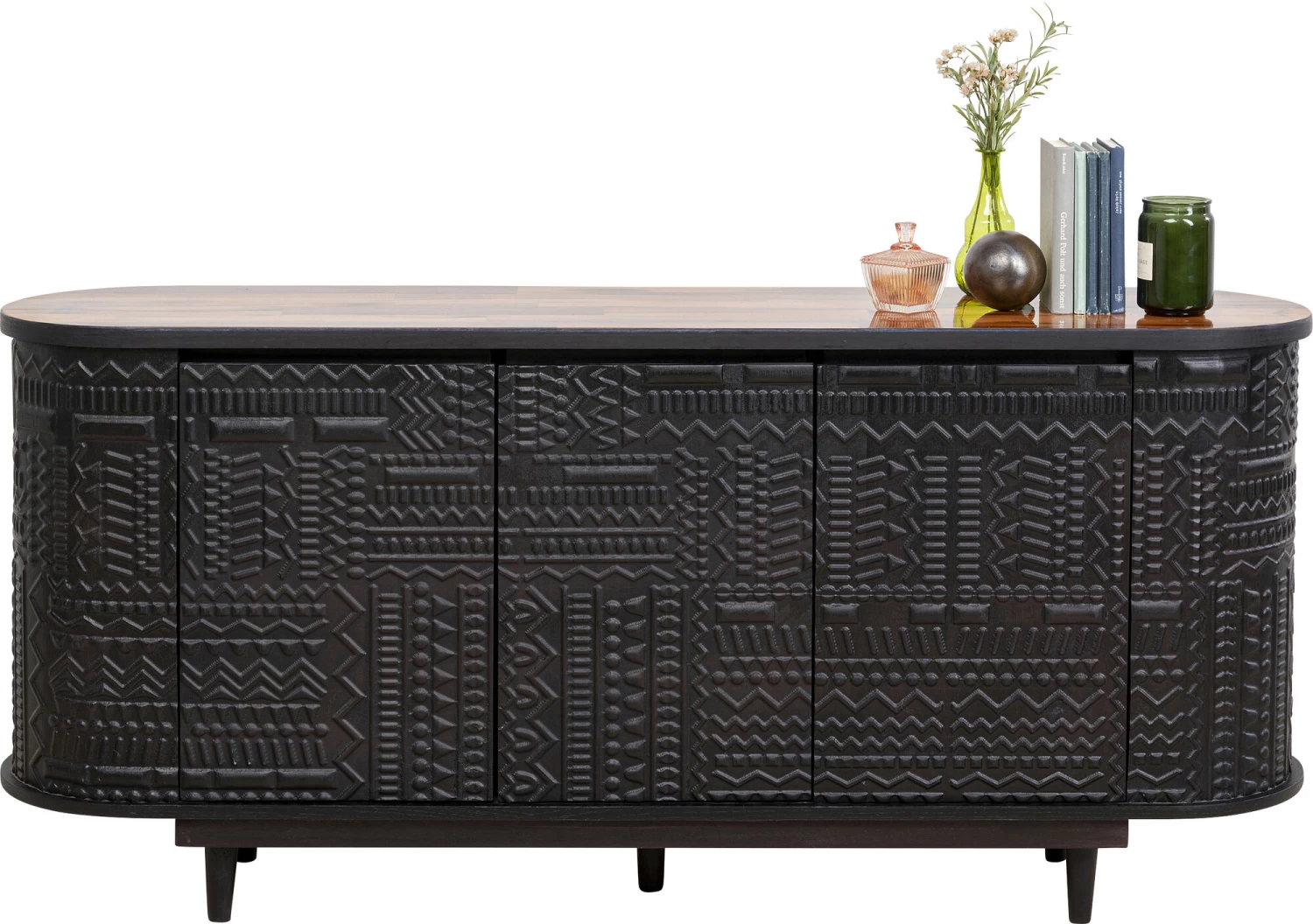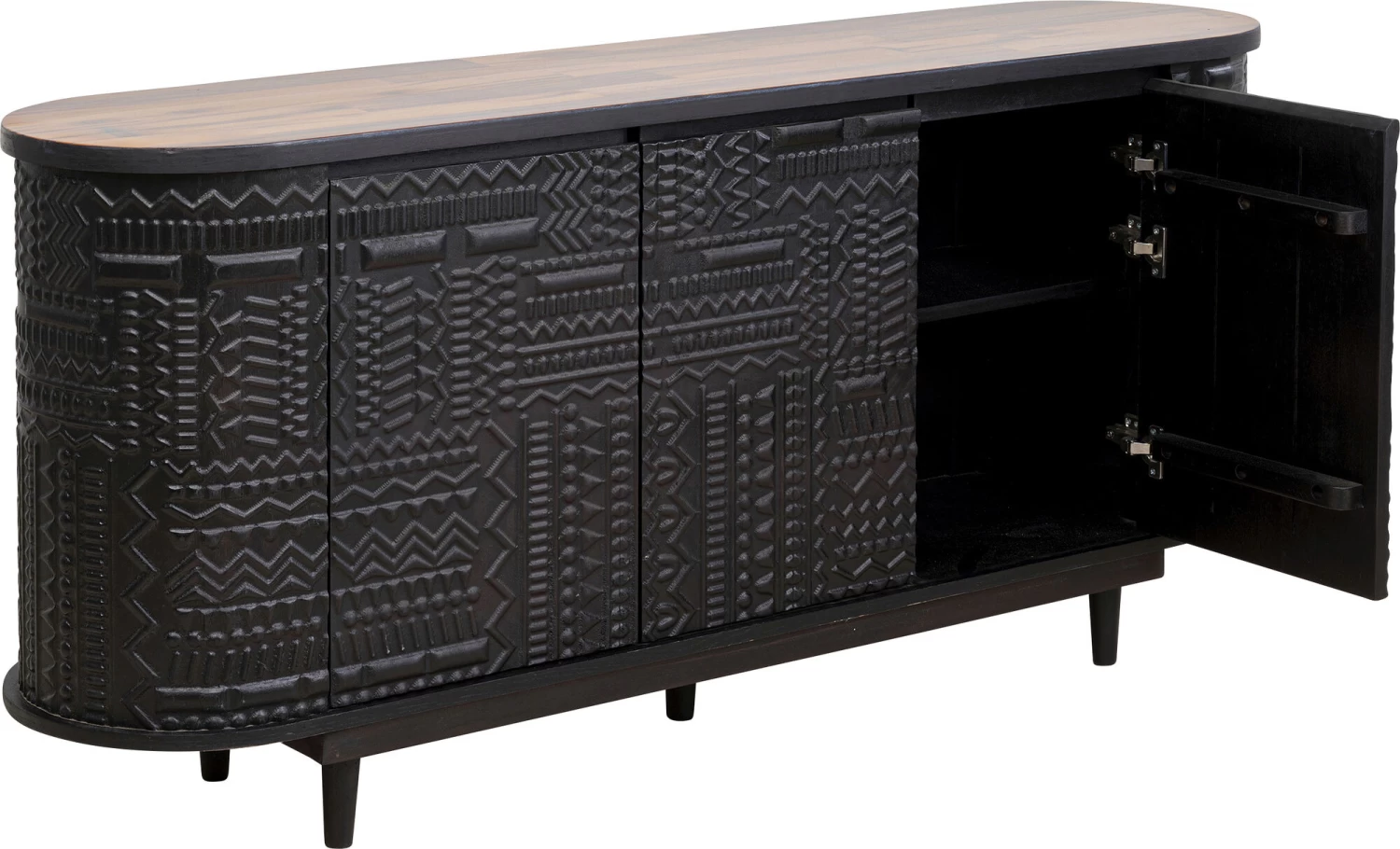 - Schwarzes Unikat Sideboard in ovaler Form, 75 x 160 x 38 Zentimeter (H/B/T)