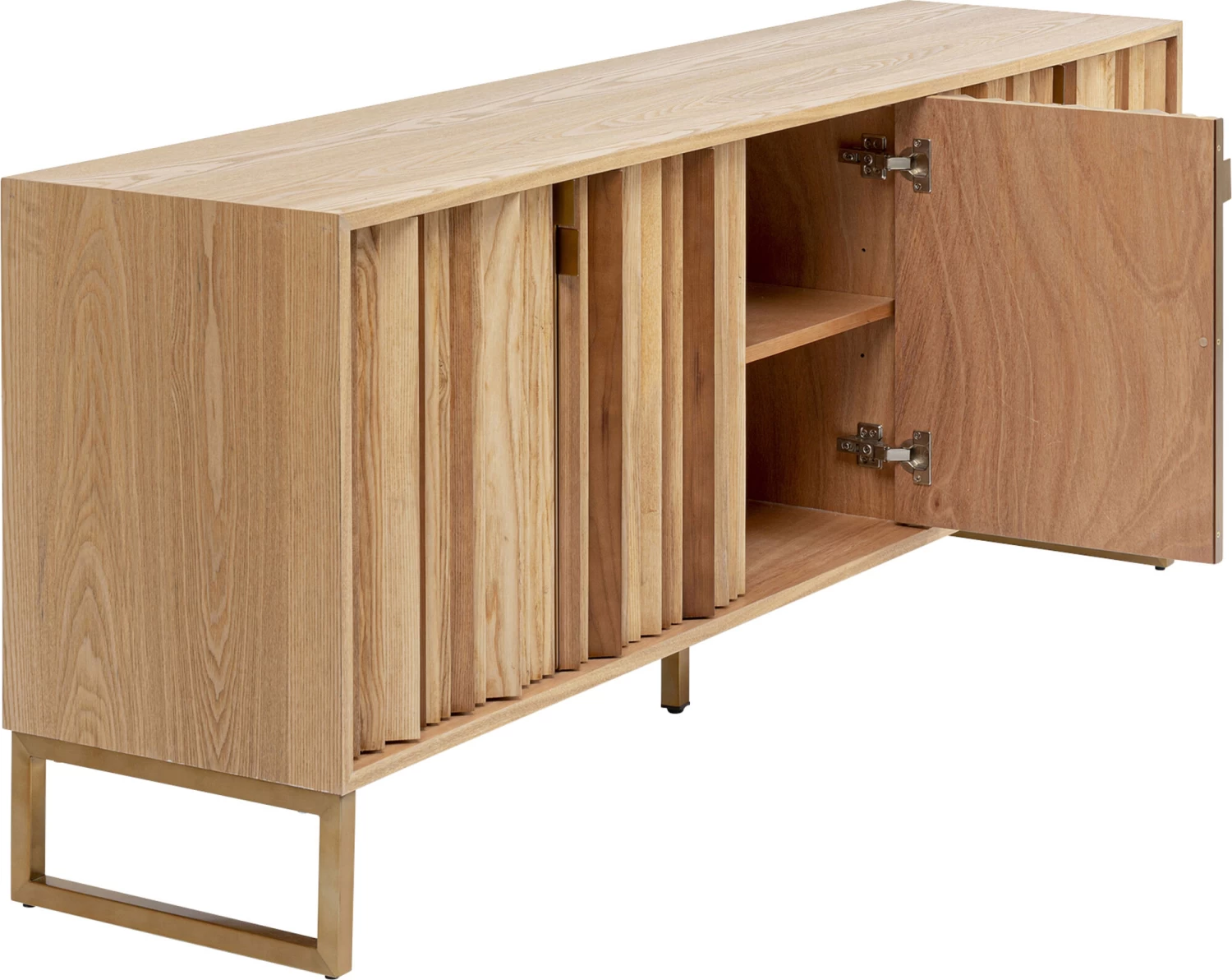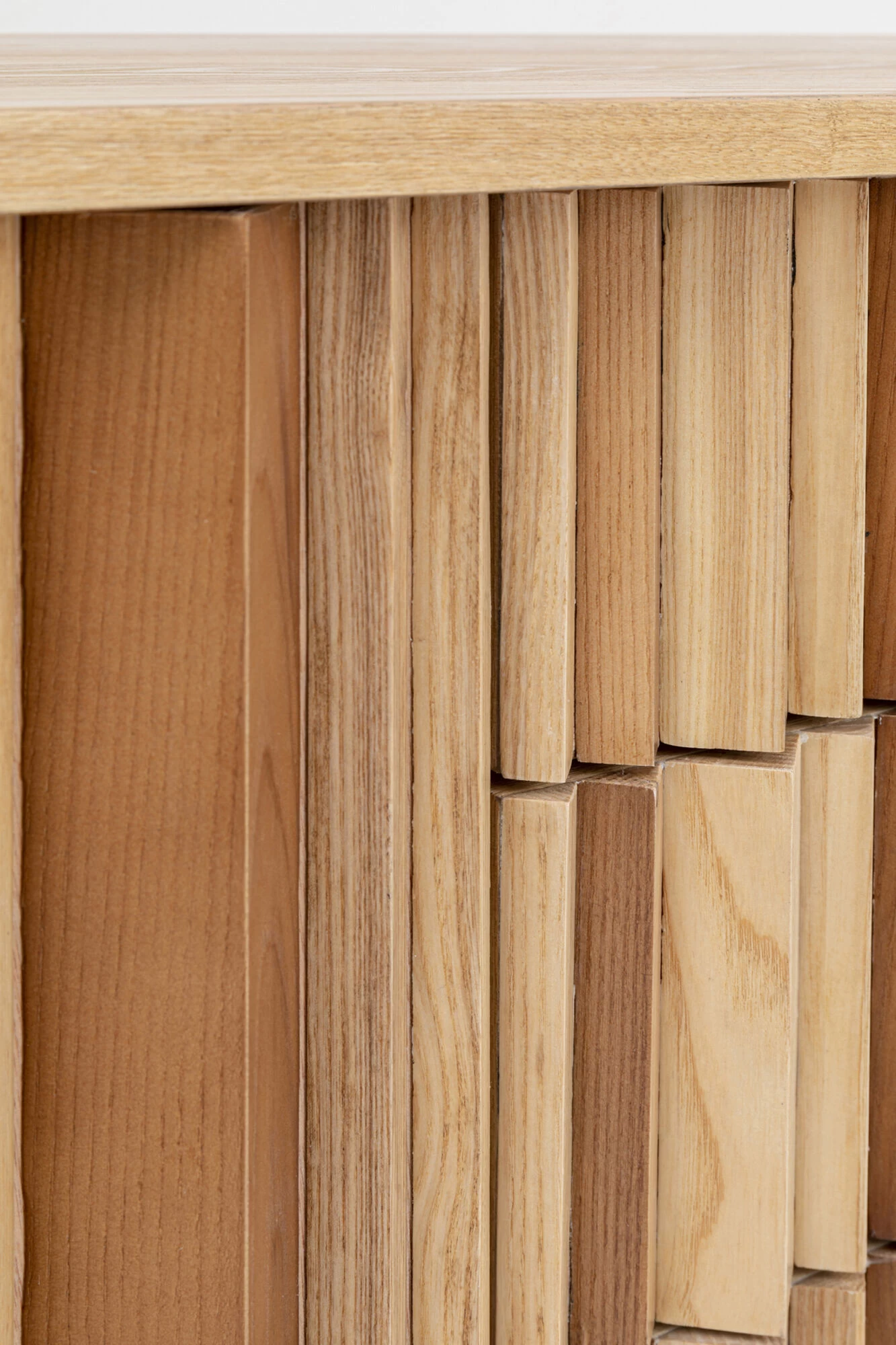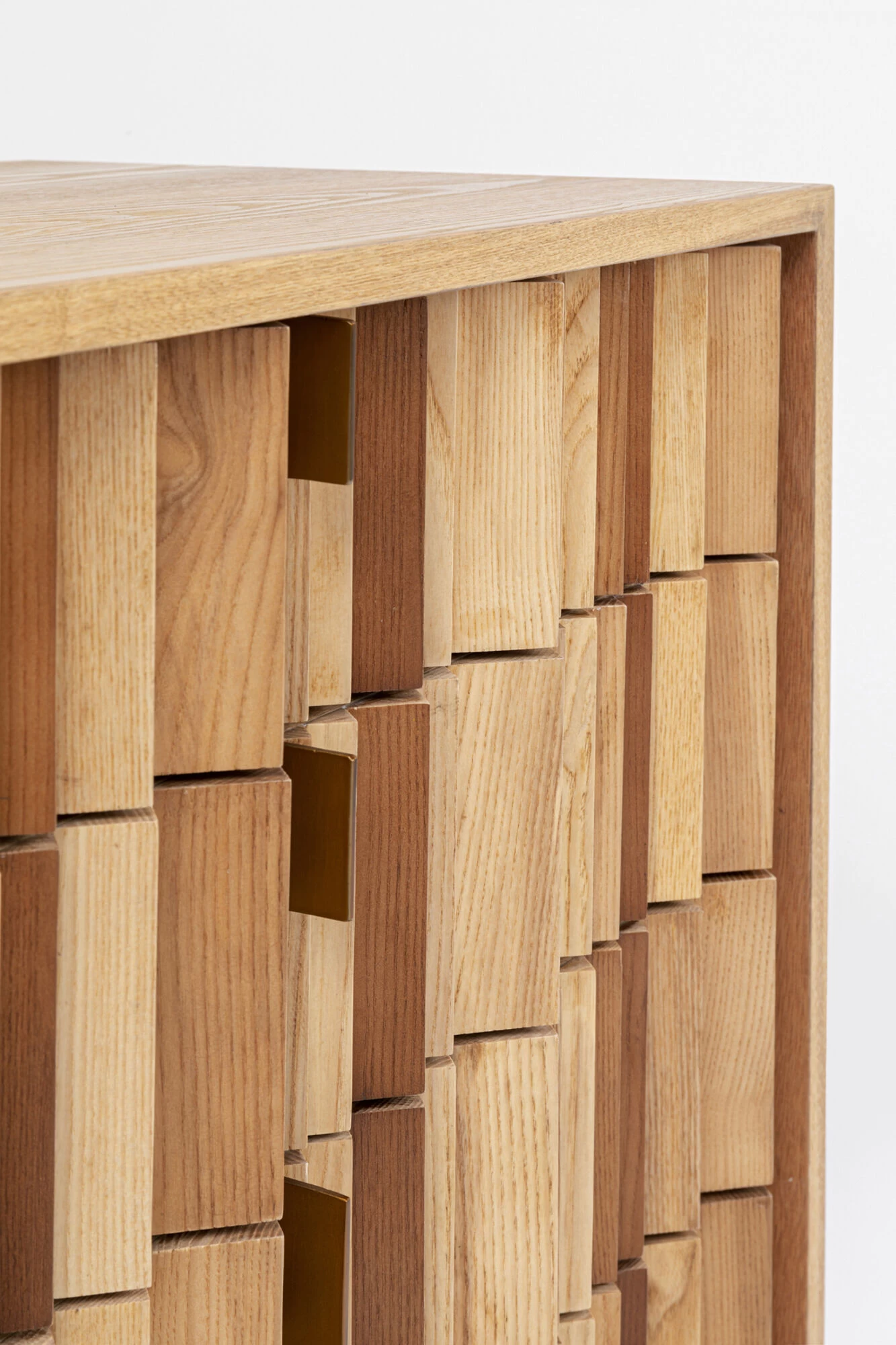 - Hell-braunes Sideboard aus Esche- Furnierschichtholz mit handgearbeiteter Front in natĂĽrlichen Holzfarben