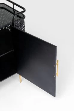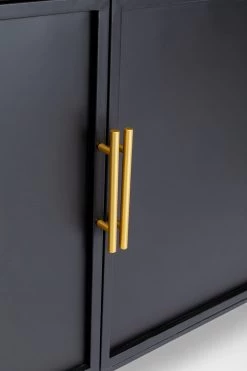 - Schwarzes Sideboard aus Metall mit goldenen Füßen und Griffen, 70 x 120 x 40 Zentimeter (H/B/T)