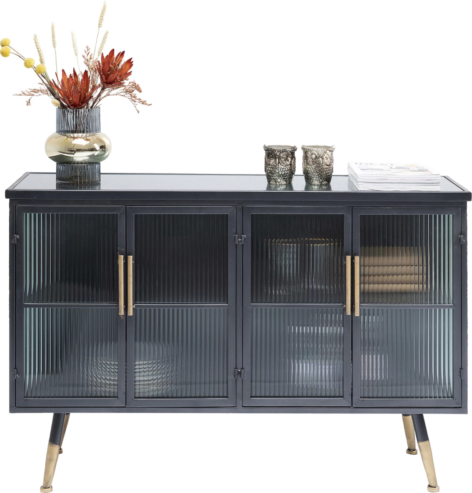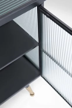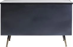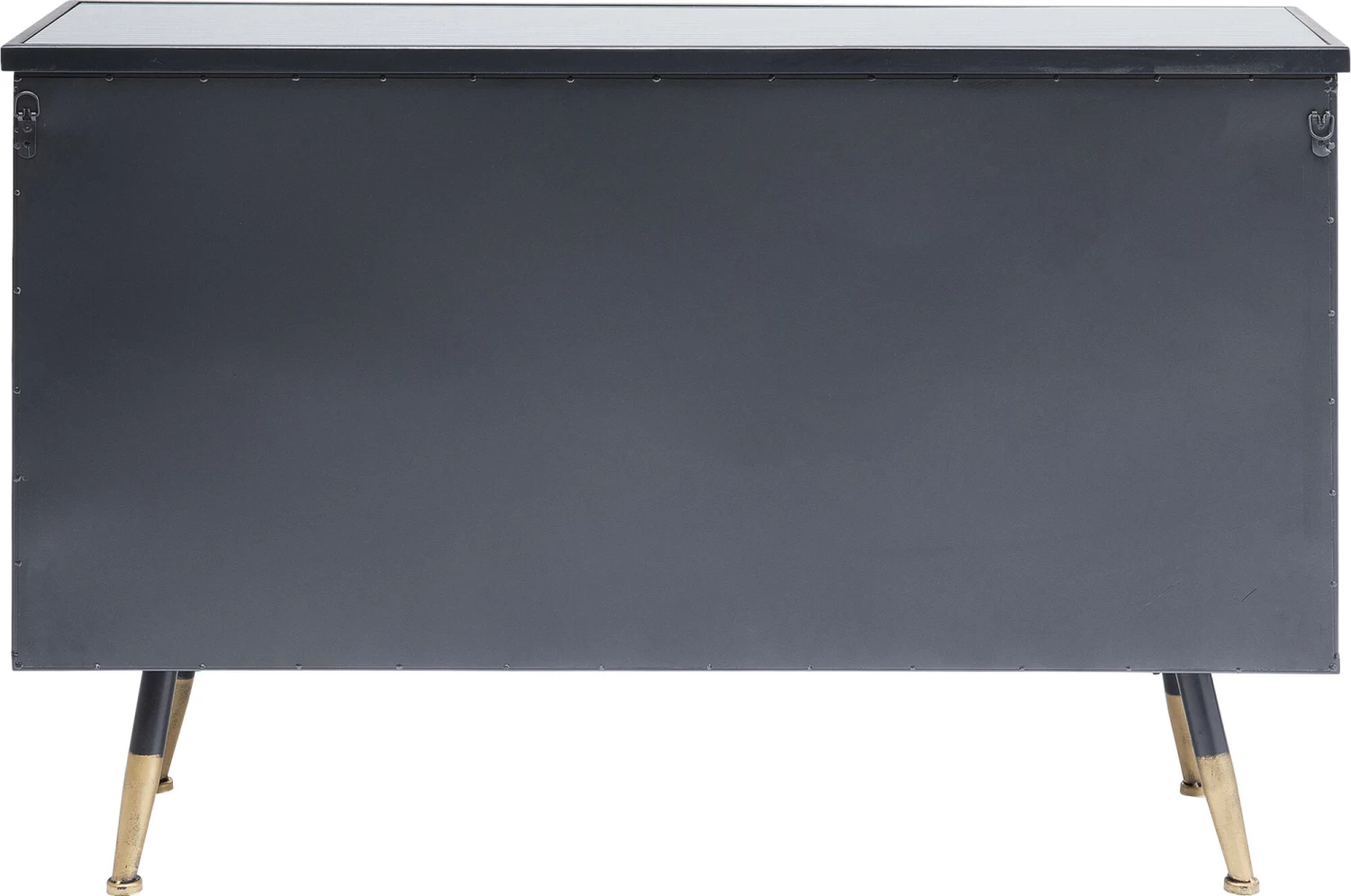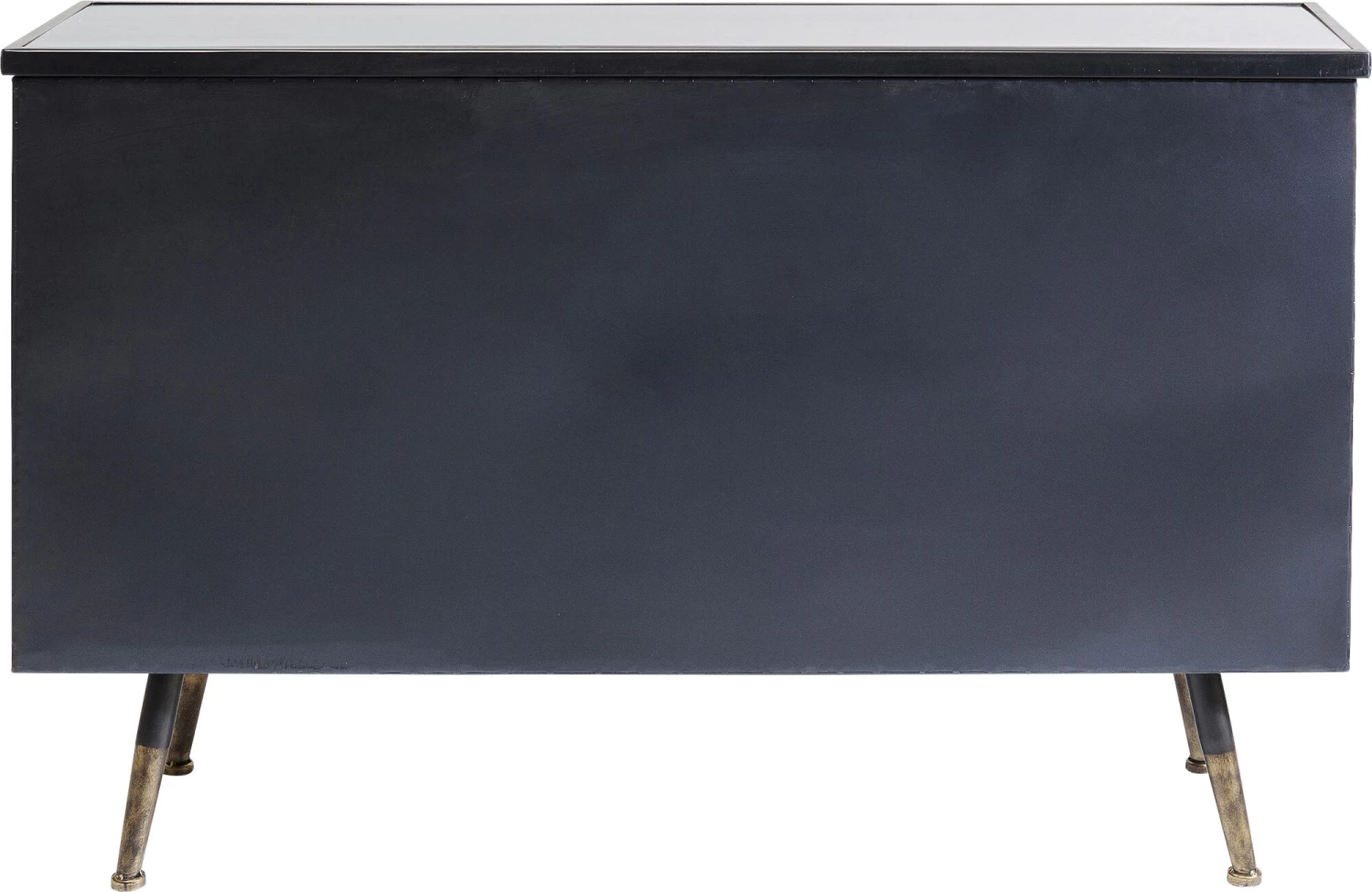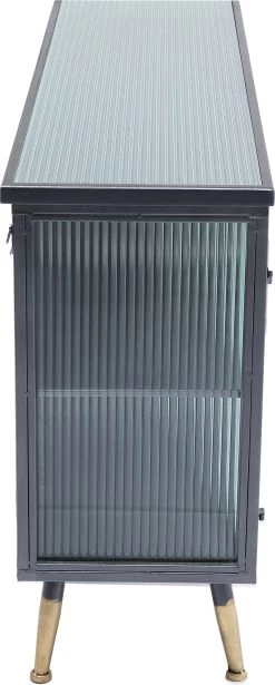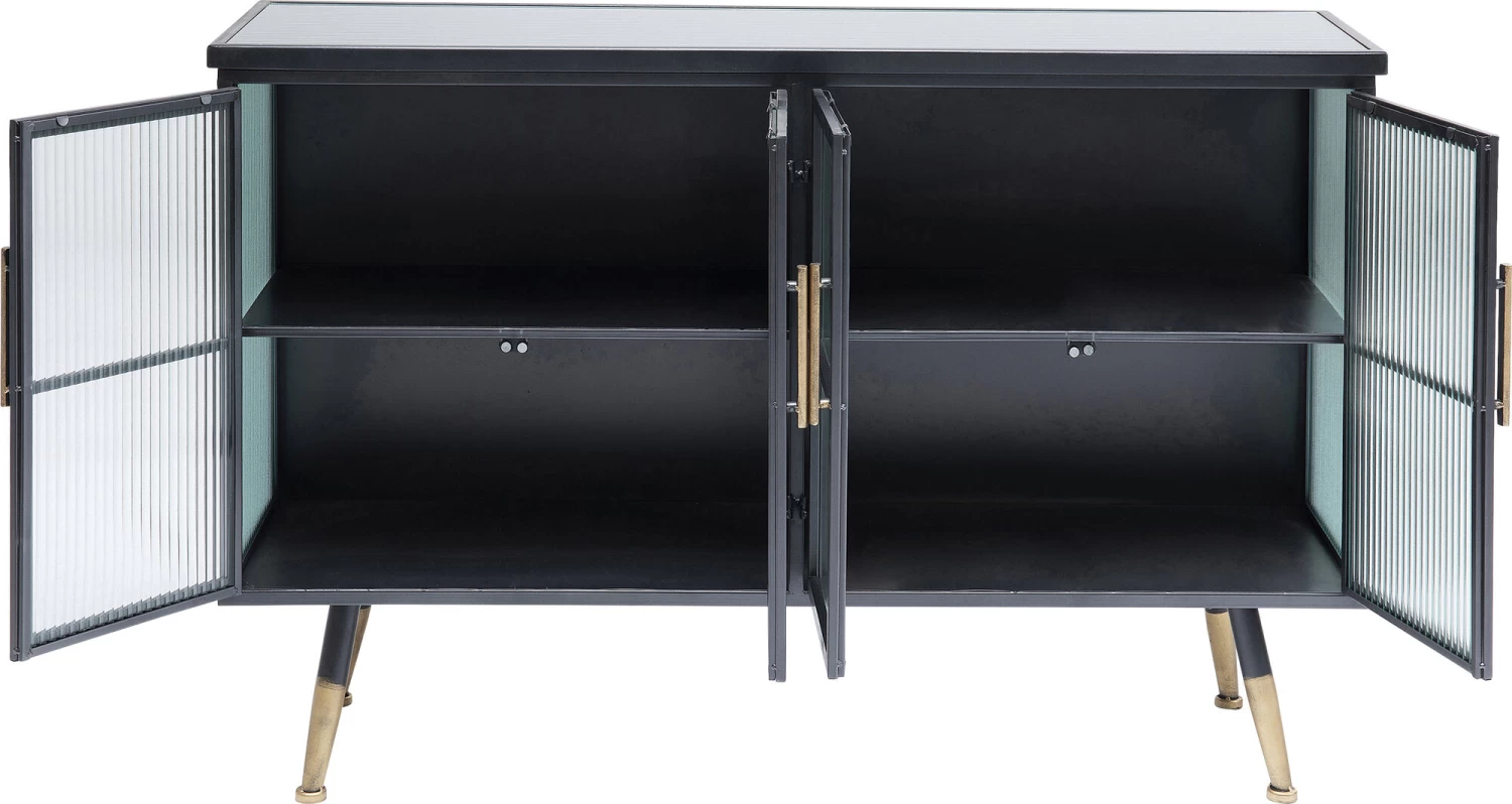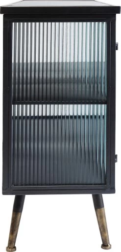 - Kleines Sideboard im Understatement-Look aus schwarzem Stahl mit Glaselementen und messingfarbenen Akzenten
