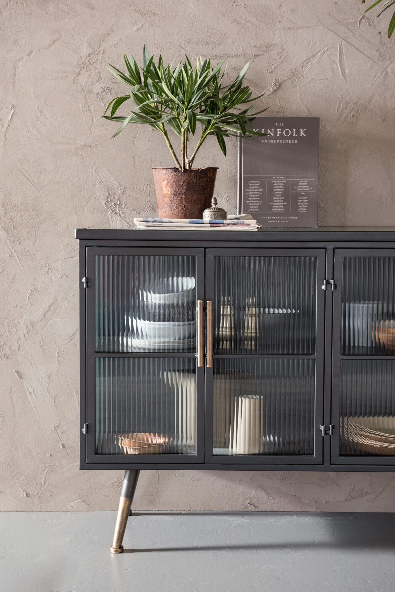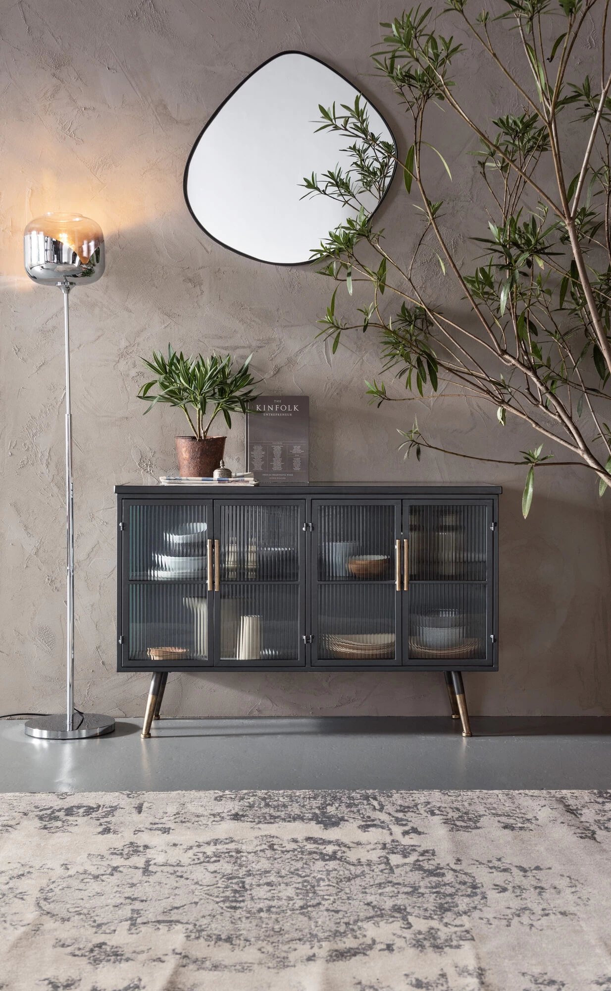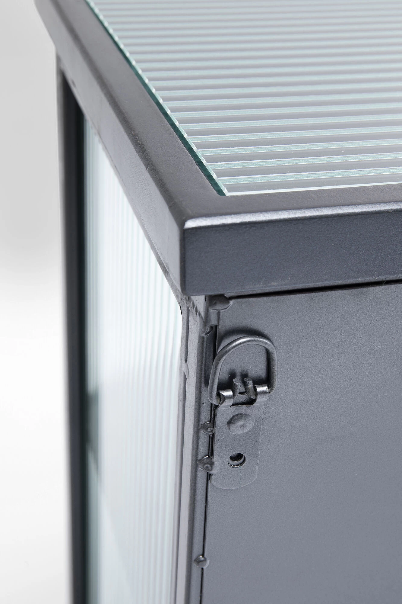 - Cooler und absolut zeitloser Material-Mix aus Stahl und geriffeltem Glas – die verfeinerte Variante des Industrial-Styles