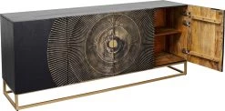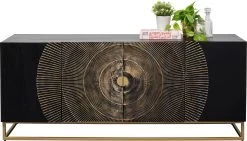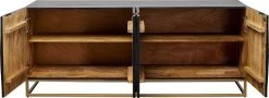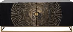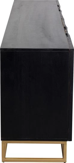 - Schwarzes Sideboard aus Massiv-Holz mit goldenem Gestell