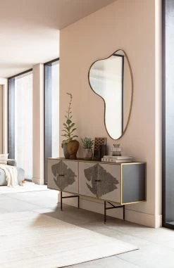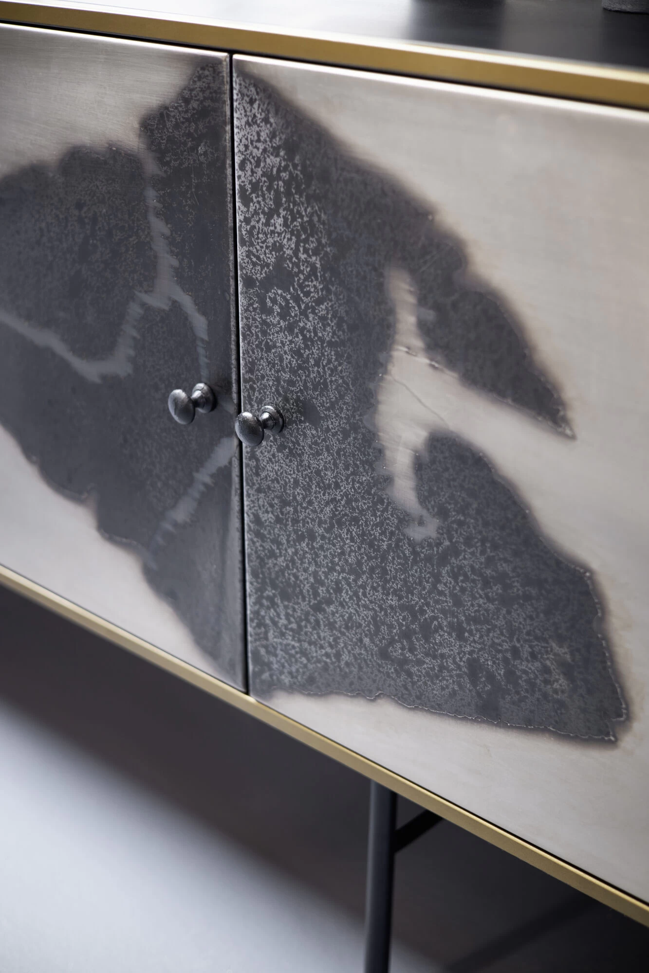- Kunstvoll: breites Sideboard mit einzigartigen Fronten