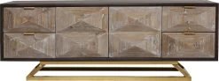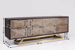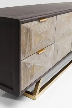 - Designer-Sideboard mit Fronten aus Massivholz in 3-D-Optik, dunklem Korpus und praktischer Push-to-open-Funktion