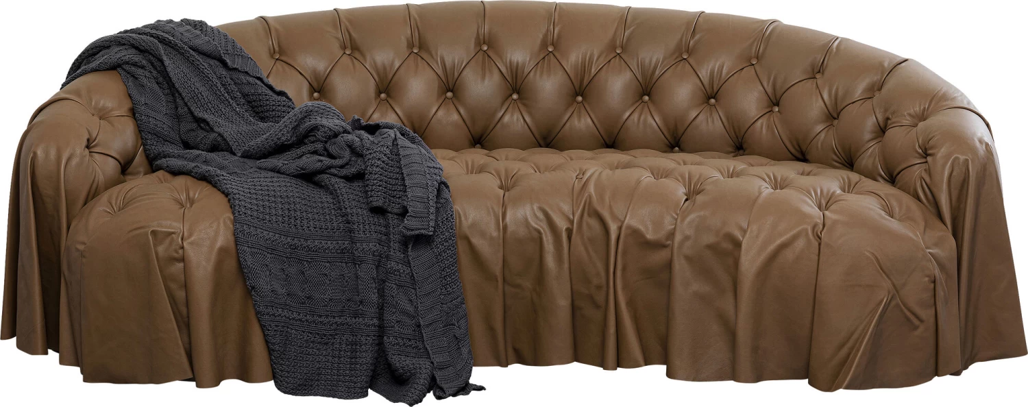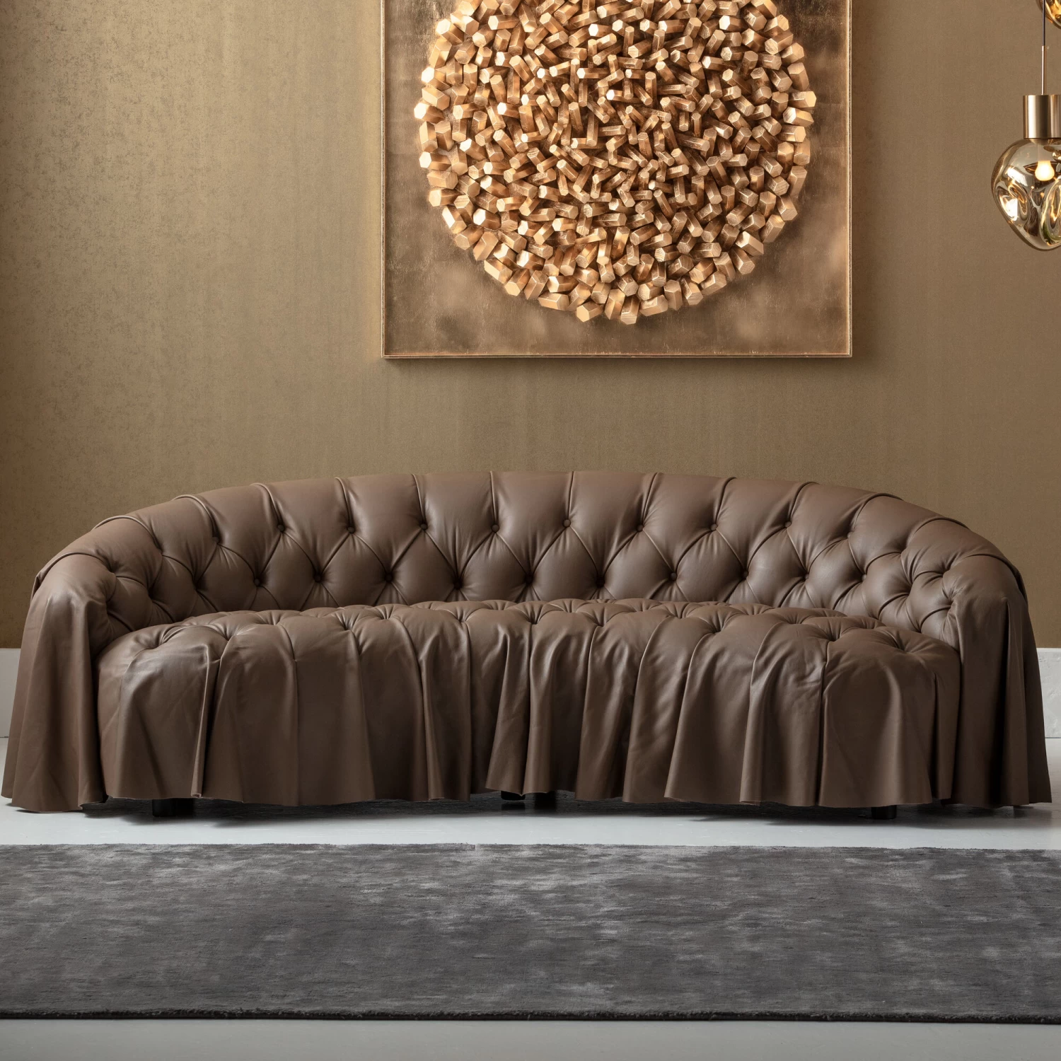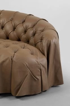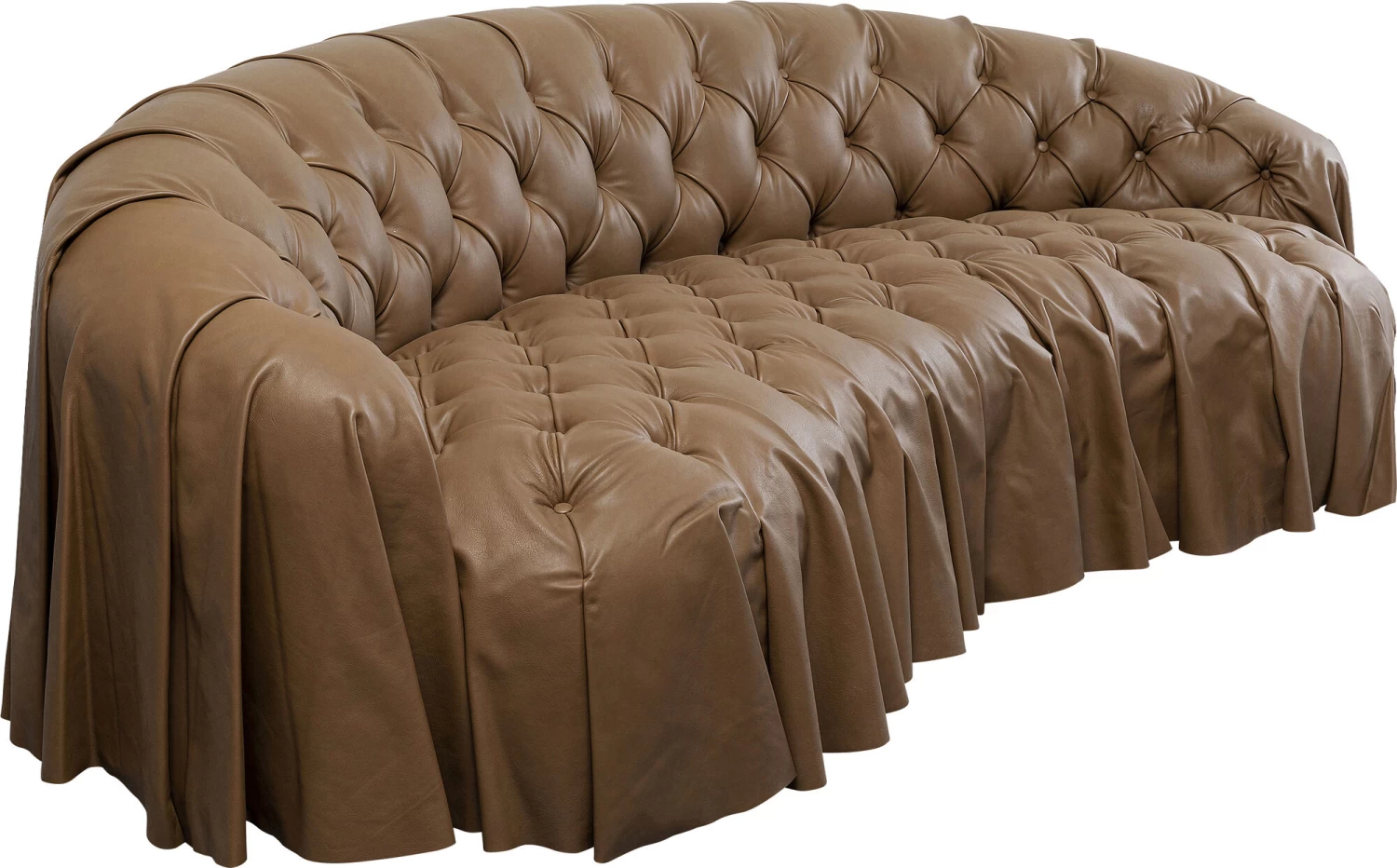 - Brauner Leder 3-Sitzer in runder Form mit ĂĽppig drapiertem Bezug
