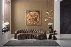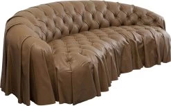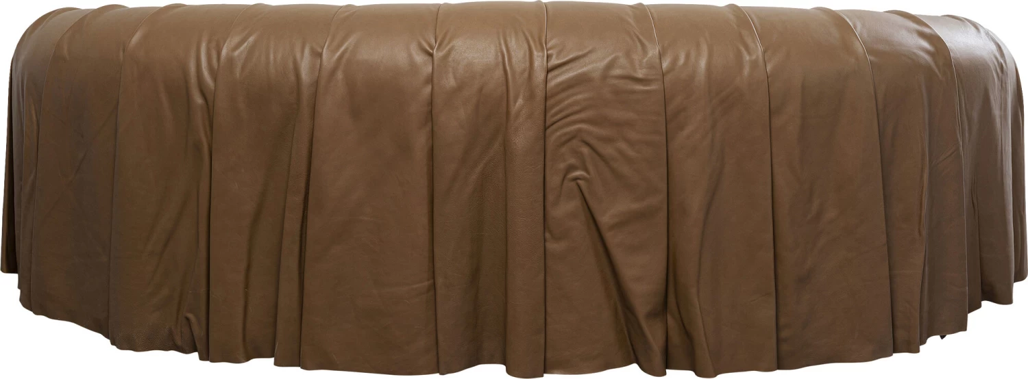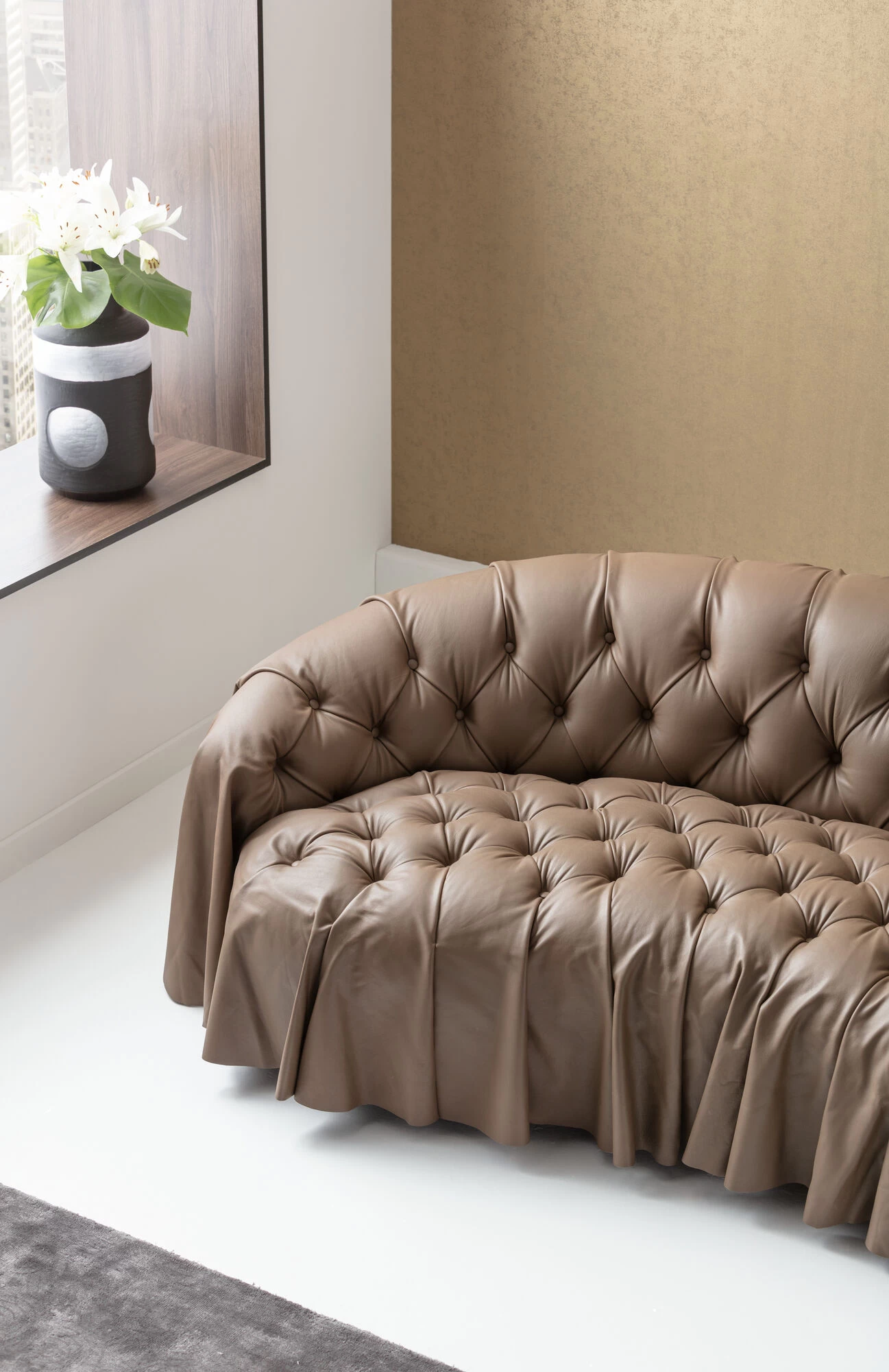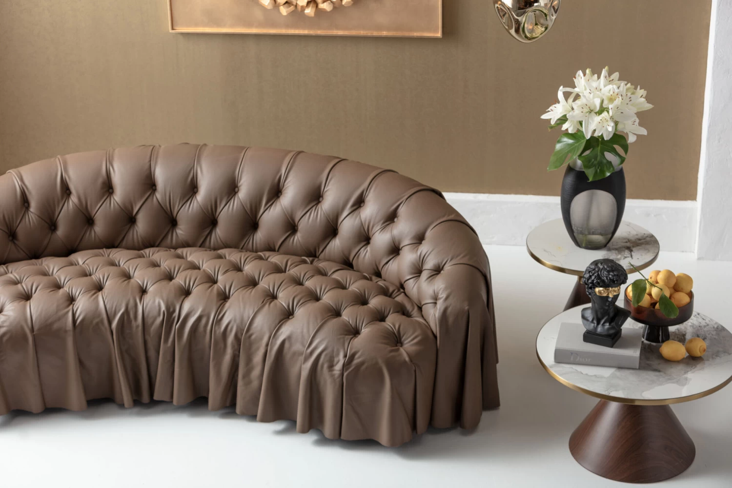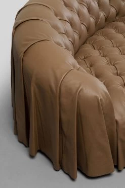 - Brauner Leder 3-Sitzer in runder Form mit ĂĽppig drapiertem Bezug