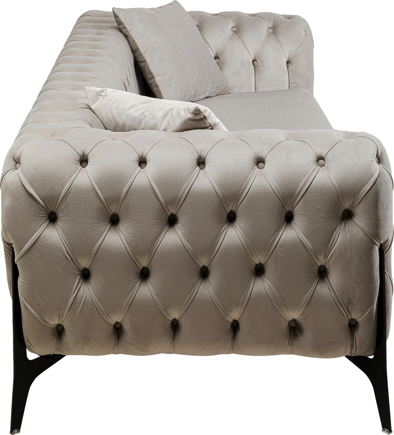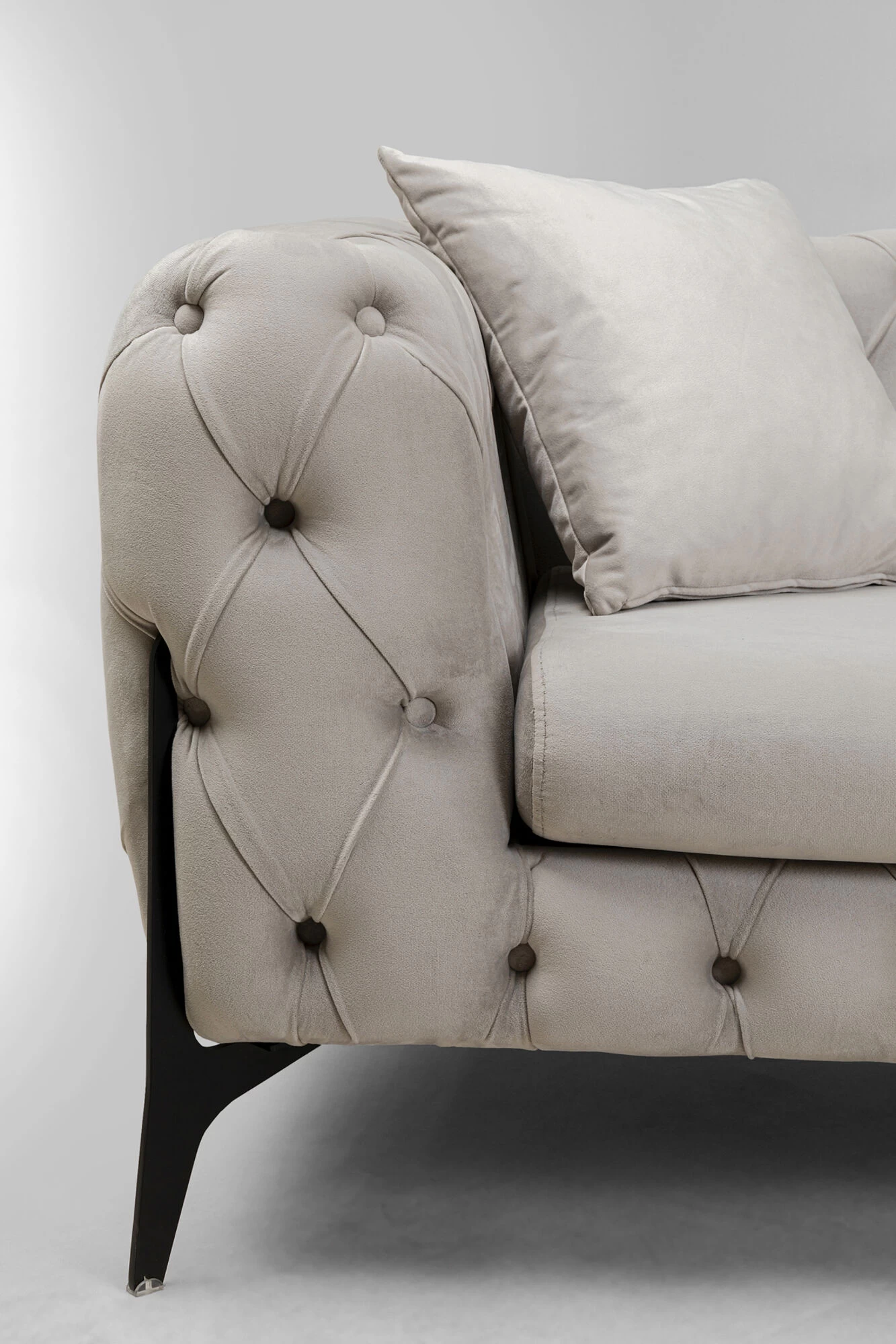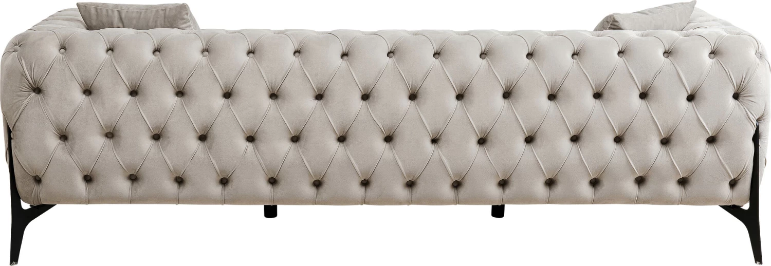 - Klassik trifft Moderne: Knopfheftung im eleganten Chesterfield-Stil auf modernen, schwarzen Beinen aus Metall