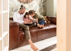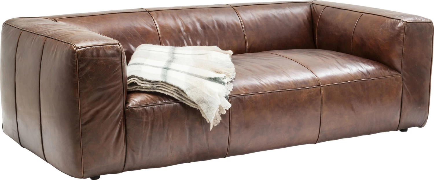 - Der solide Unterbau aus Massivholz und Holzwerkstoff und Füße aus Massivholz unterstreichen die Qualität des braunen Ledersofas