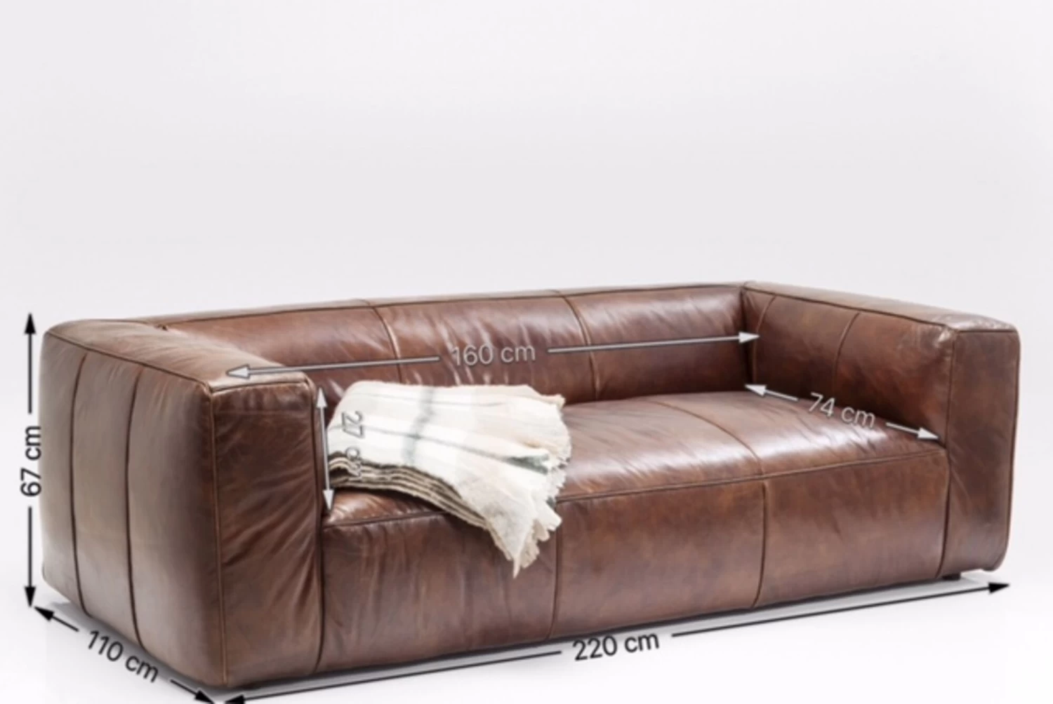 - 3 Sitzer Sofa aus Leder in Braun, 67 x 220 x 110 Zentimeter (H/B/T)