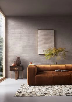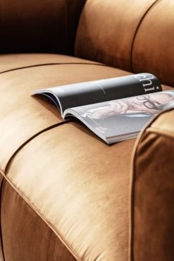 - Man könnte es fast auch veganes Ledersofa nennen: die changierende Samt-Optik in Braun wirkt sehr natürlich