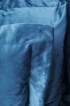 - Feiner, pflegeleichter Bezug aus Kunstfaser in schimmernder Samtoptik in der Edelsteinfarbe Petrolblau. Nobel!