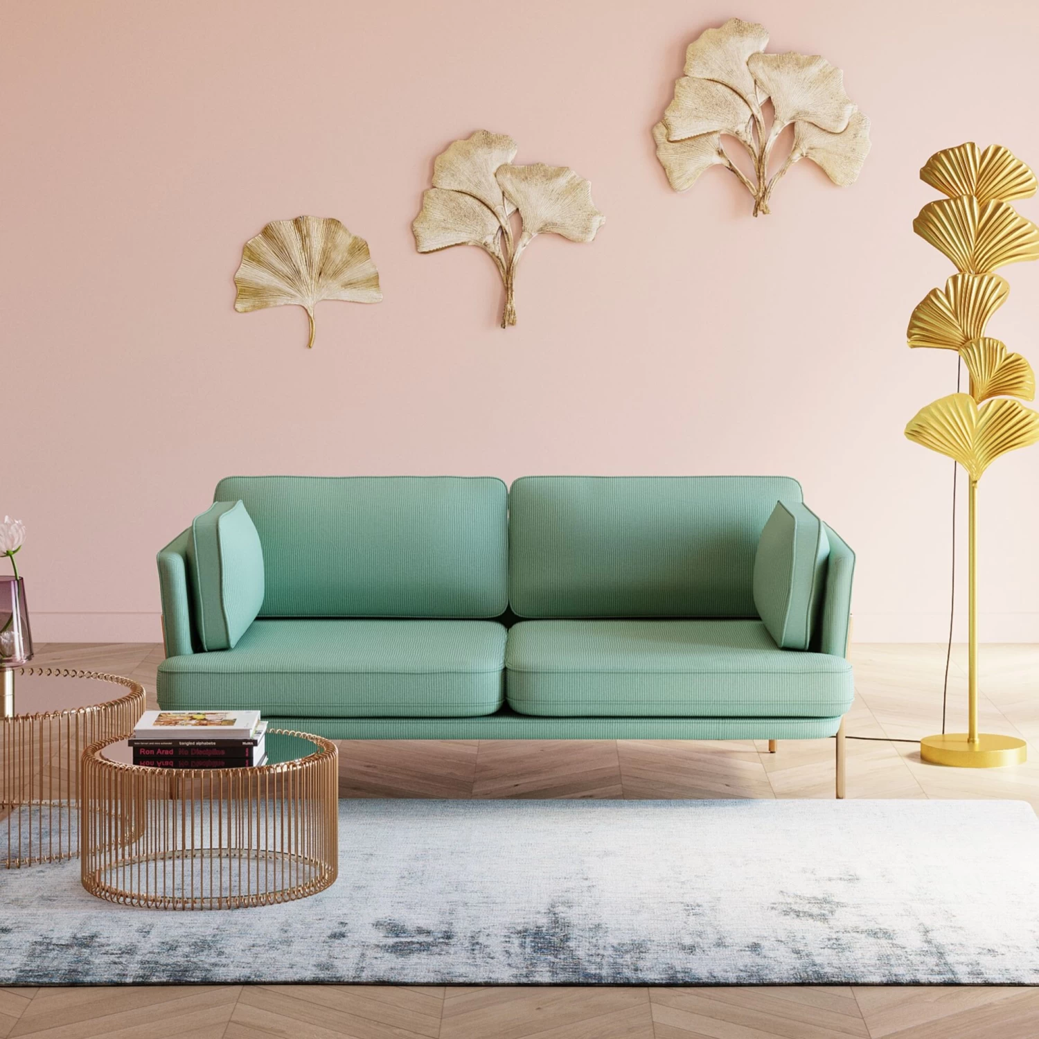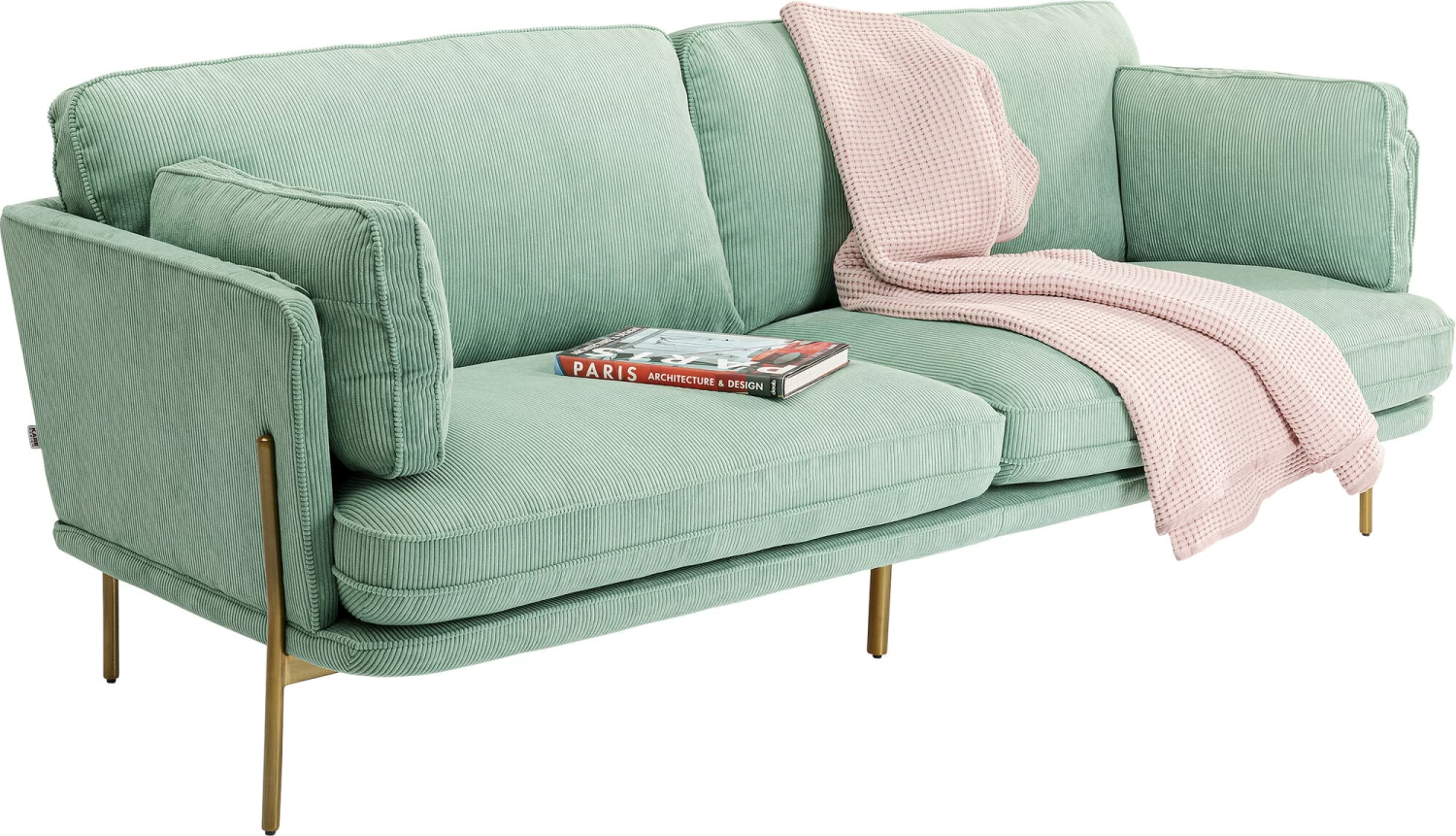 - Trend-Farbe: Mint in Verbindung mit dem messingfarbenen Gestell schmeichelt jedem Raum