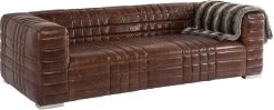 - Die klare, kubische Form der 3-er Couch wird durch eine aufwändige, lineare Steppung unterstrichen