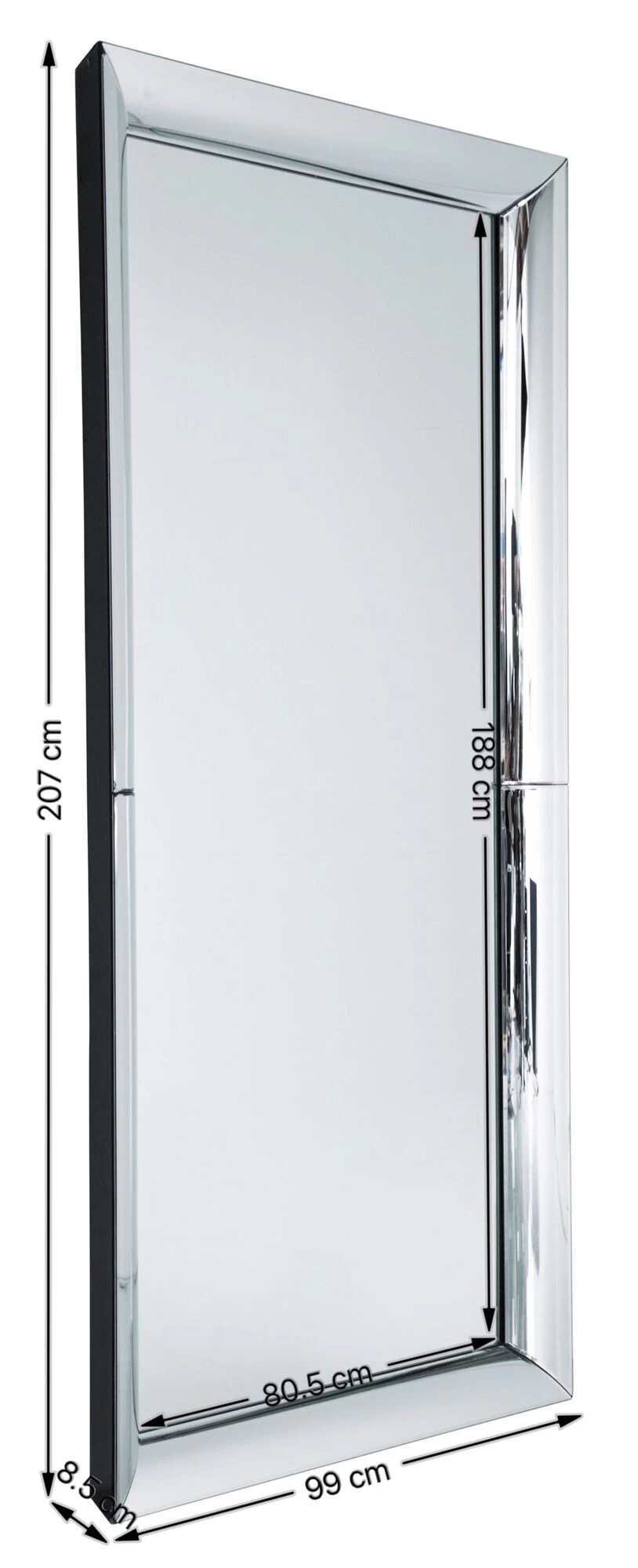 - Großer rechteckiger Ganzkörper-Spiegel, 207 x 99 x 8.5 Zentimeter (H/B/T)