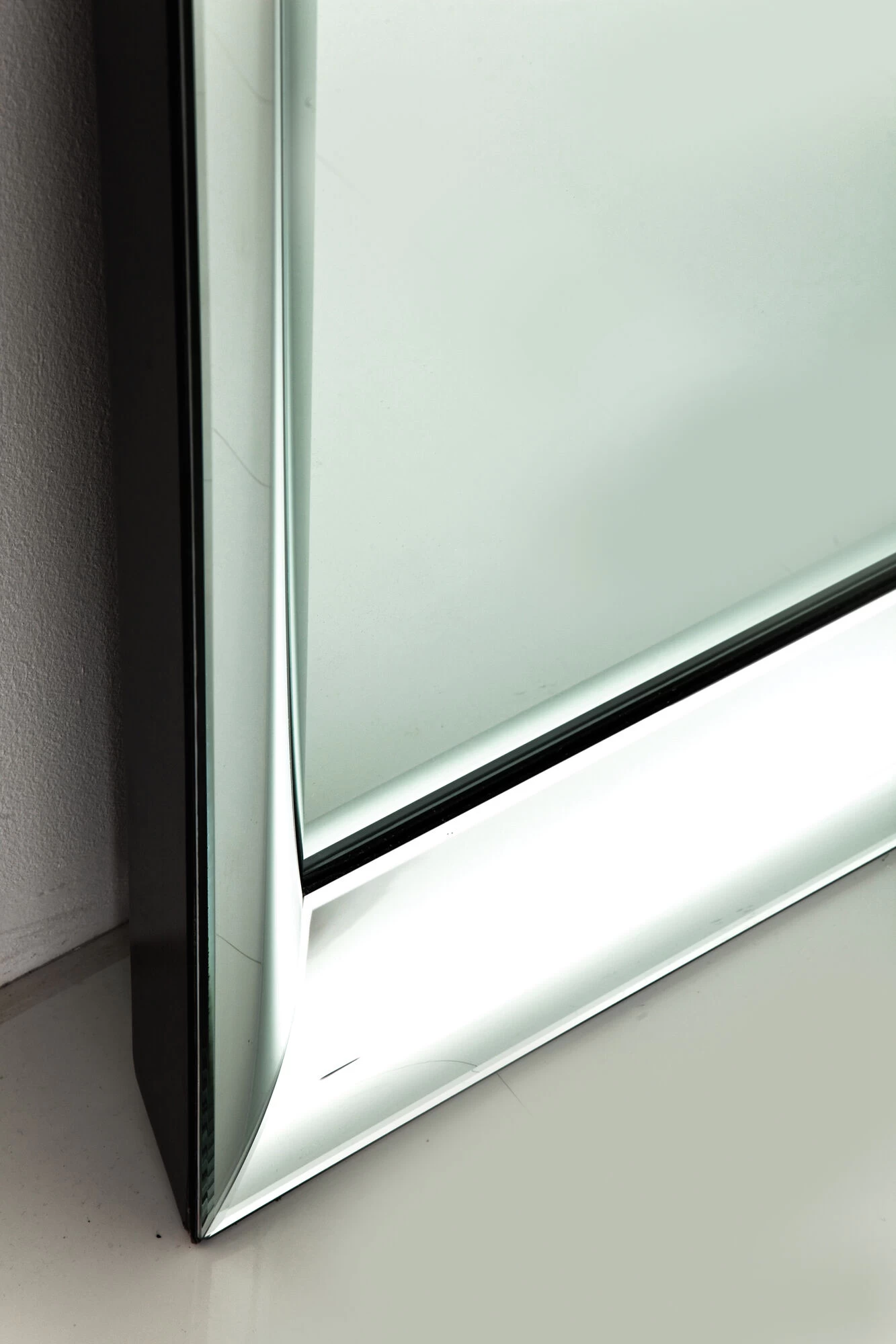 - Luxuriöser Spiegelrahmen mit facettierten Kanten, an den Seiten schwarz lackiert