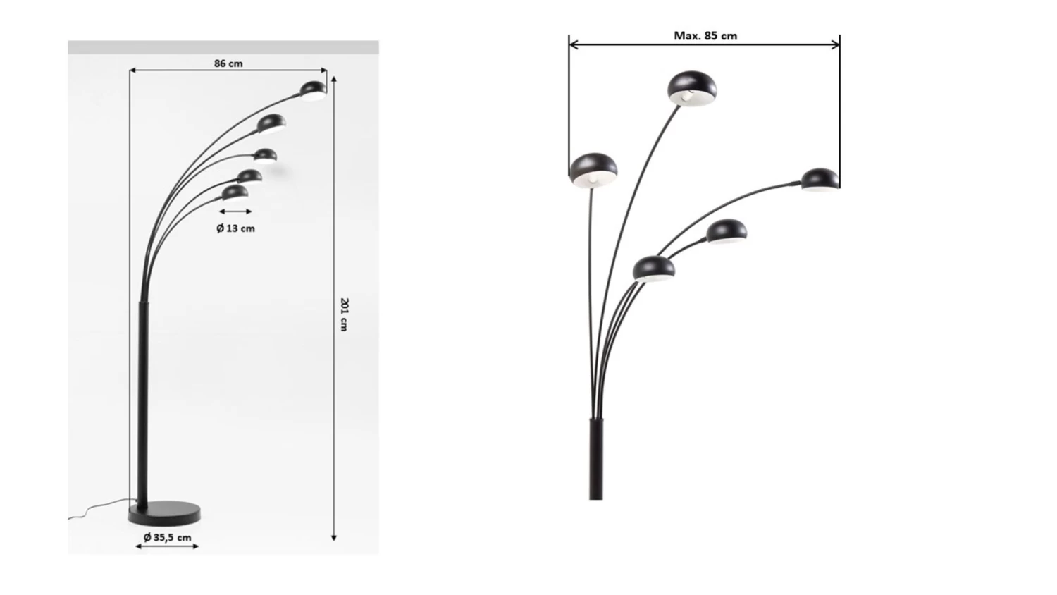 - Stehleuchte aus schwarz lackiertem Stahl mit fünf Lichtquellen