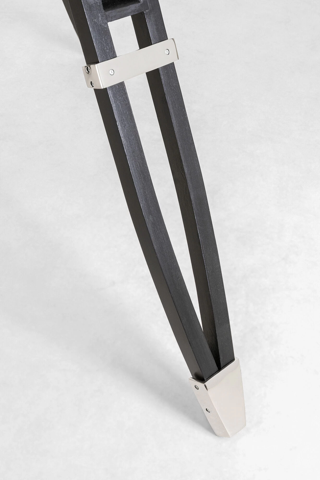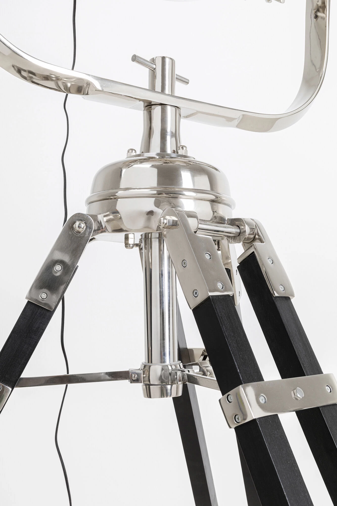 - Große Stehleuchte in Schwarz und Silber mit einem Dreibein-Gestell, 230 x 76 x 66 Zentimeter (H/B/T)