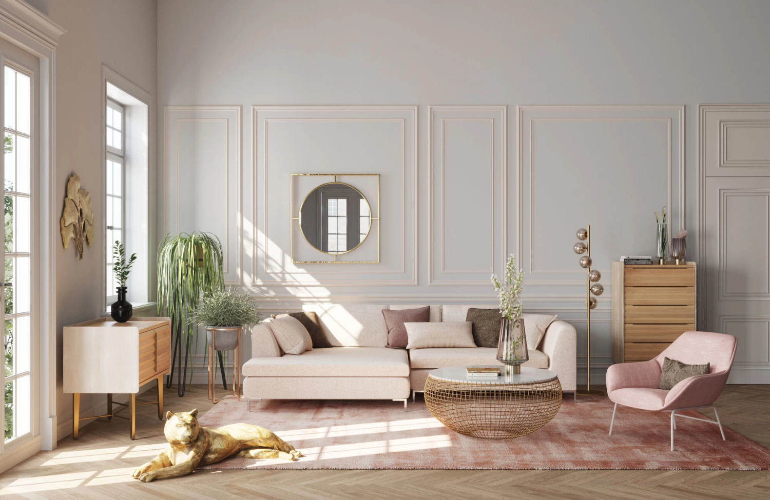 - 3 bis 5 Lichtquellen braucht ein größerer Raum – das empfehlen Lichtdesigner. Eine davon sollte indirektes Licht streuen – so wie diese Lampe