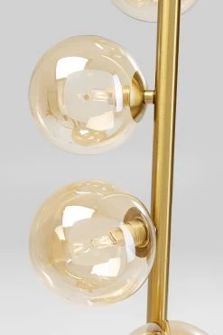 - Wie Satelliten umkreisen die kugelrunden Leuchtkörper die Wohnzimmer-Lampe, der Honigton des Glases sorgt für warmes, schmeichelhaftes Licht