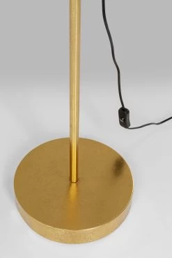 - Der goldene, runde Leuchtenfuß aus Stahl verleiht dem Eyecatcher Standfestigkeit