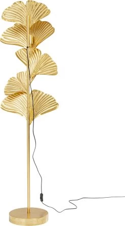 - Hohe Stehleuchte mit goldenen Leuchtenschirmen in Form von Ginkgo-Blättern