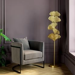 - Hohe Stehleuchte mit goldenen Leuchtenschirmen in Form von Ginkgo-Blättern