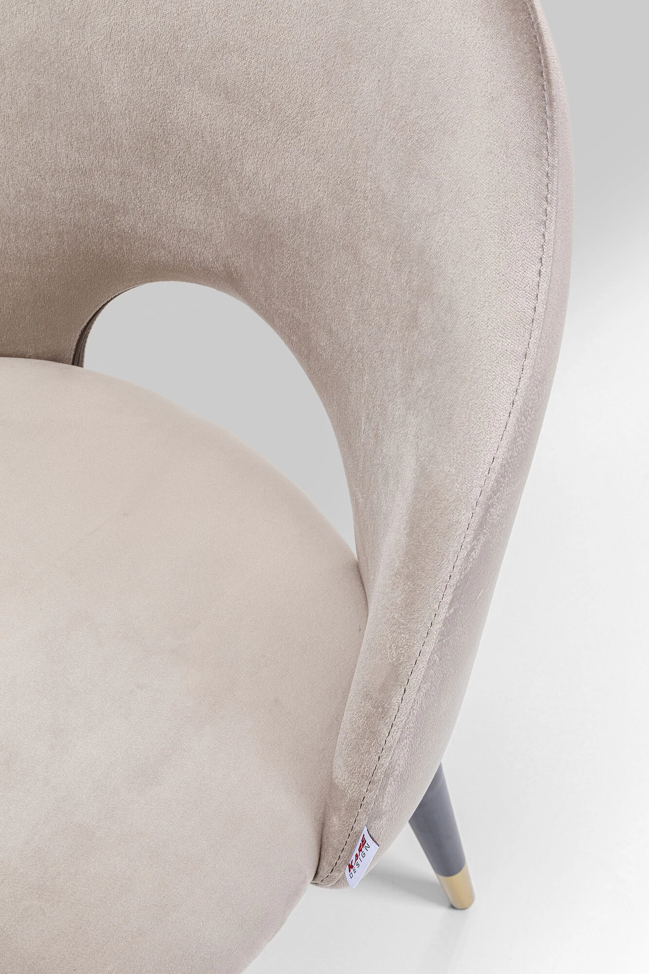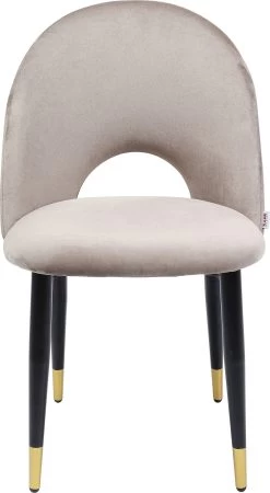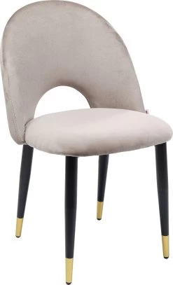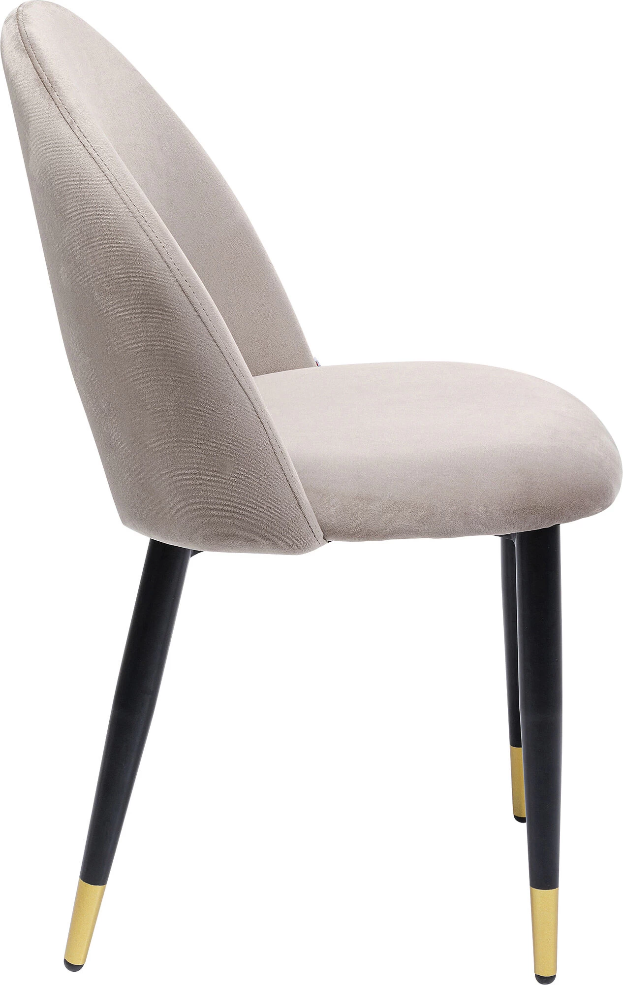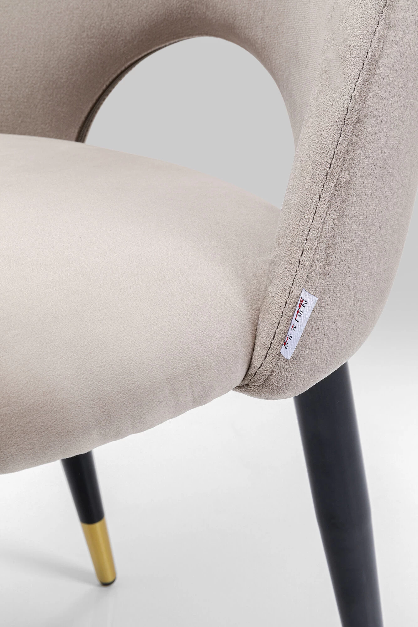 - Blickfänger mit Grandezza: Polsterstuhl mit schwarz lackierten Beinen und einem samtigen Bezug in der klassischen Farbe Beige