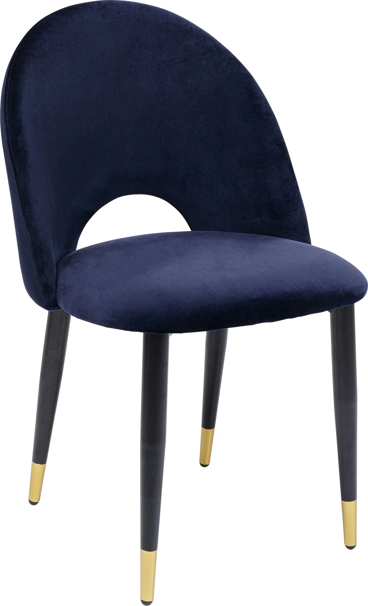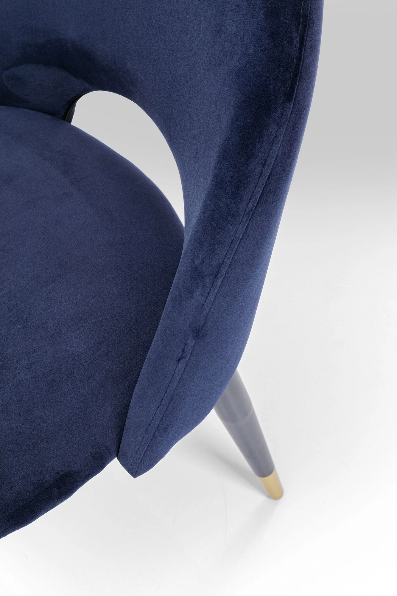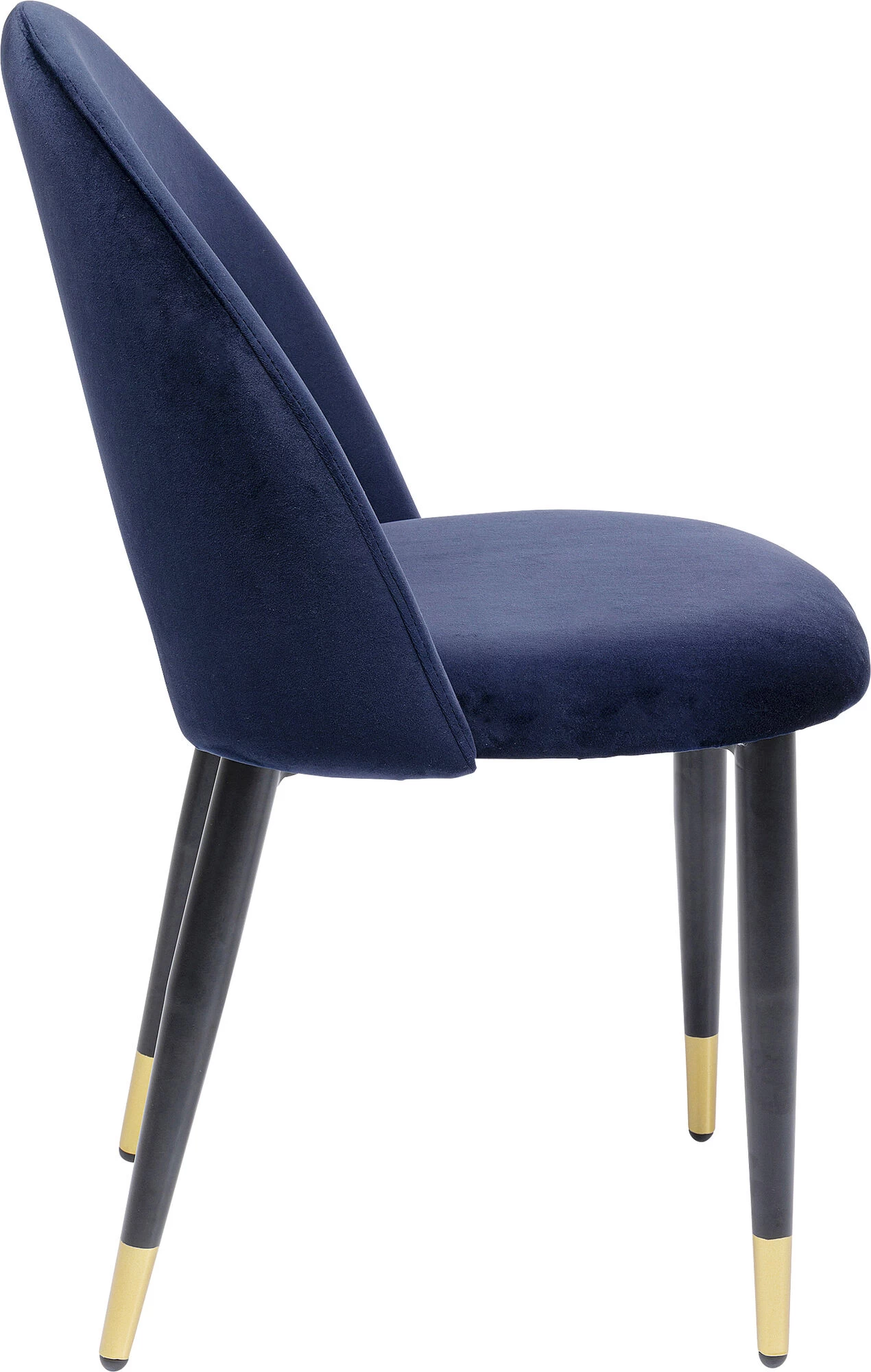 - Set aus zwei PolsterstĂĽhlen mit schwarzen Beinen und einem samtigen Bezug in leuchtendem Dunkelblau