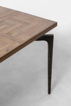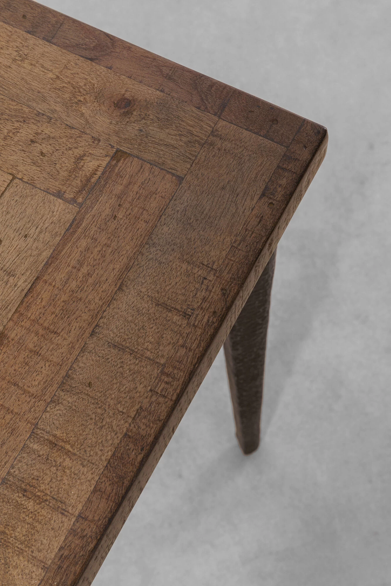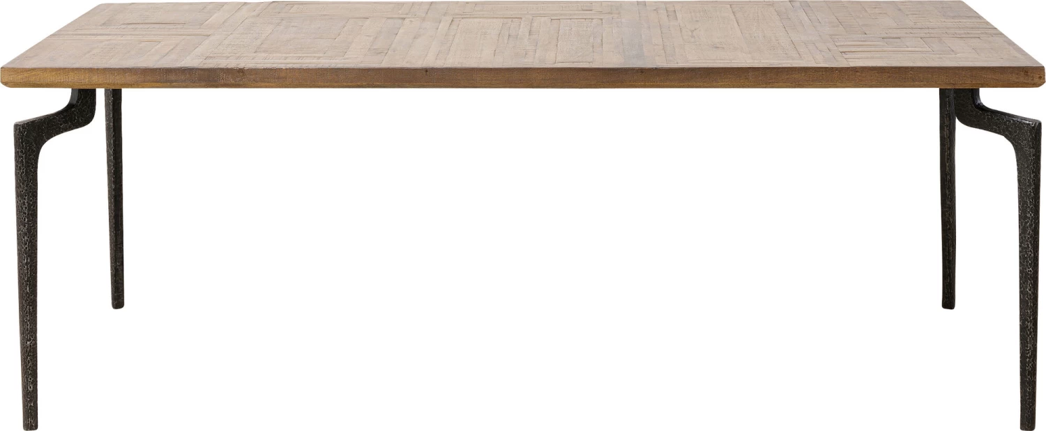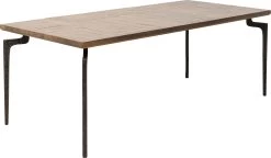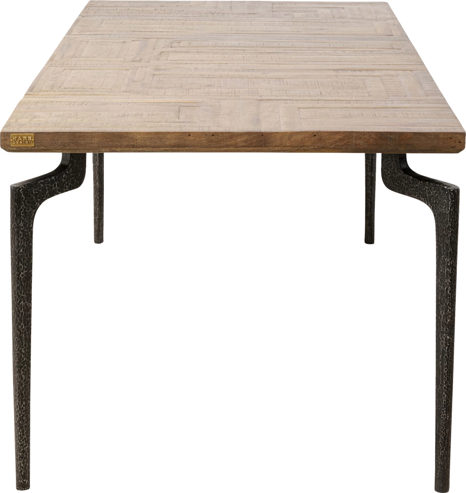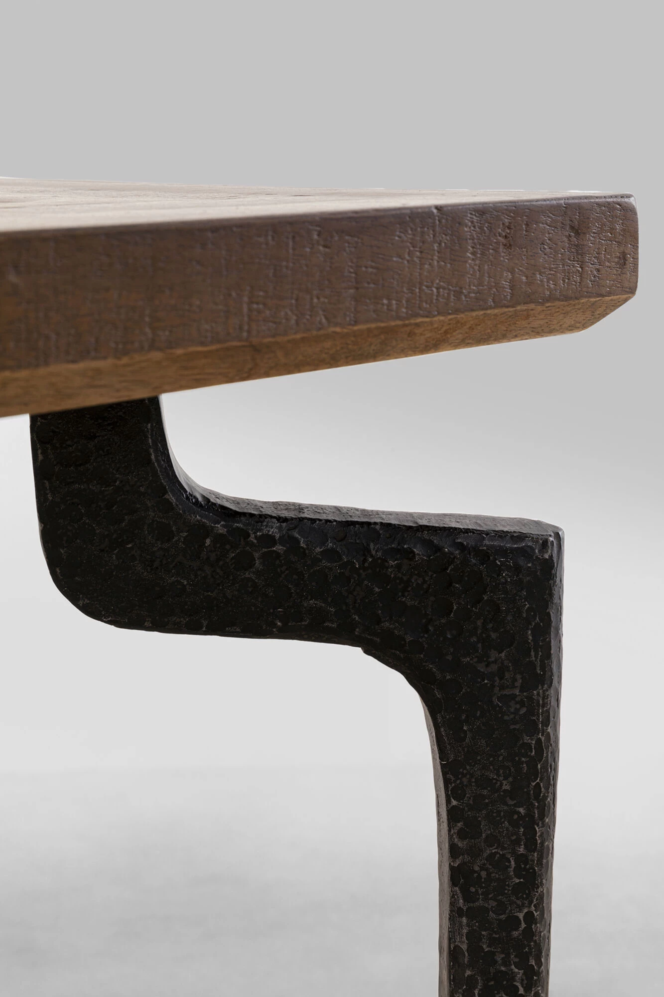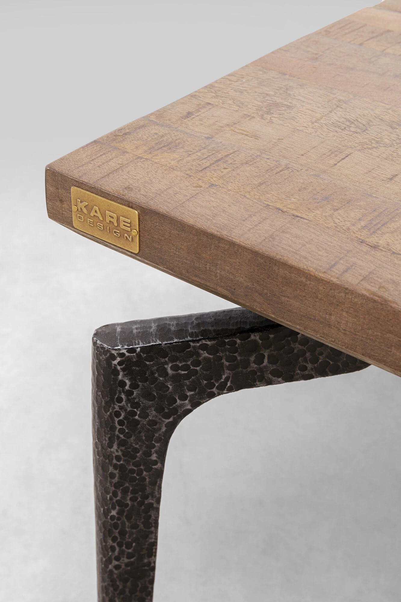 - Einzigartig machen diesen Holztisch die raffiniert geformten, gehÀmmerten Stahl-Beine