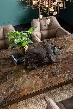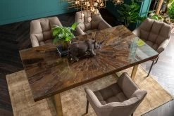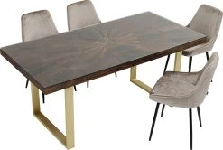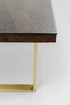 - Rechteckiger Esstisch aus Massivholz mit messingfarbenem Kufengestell und Unikat-Charakter