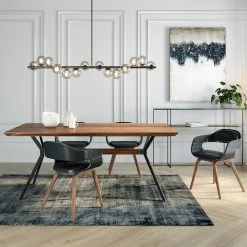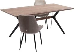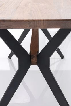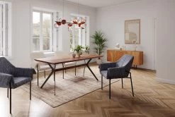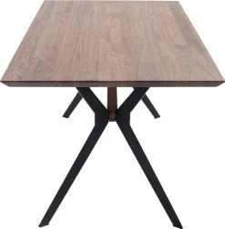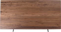 - Rechteckiger Esstisch mit einer hochwertigen Tischplatte aus massivem Walnussholz und dynamisch geformten Stahl-Beinen in Schwarz für ca. 4-6 Personen