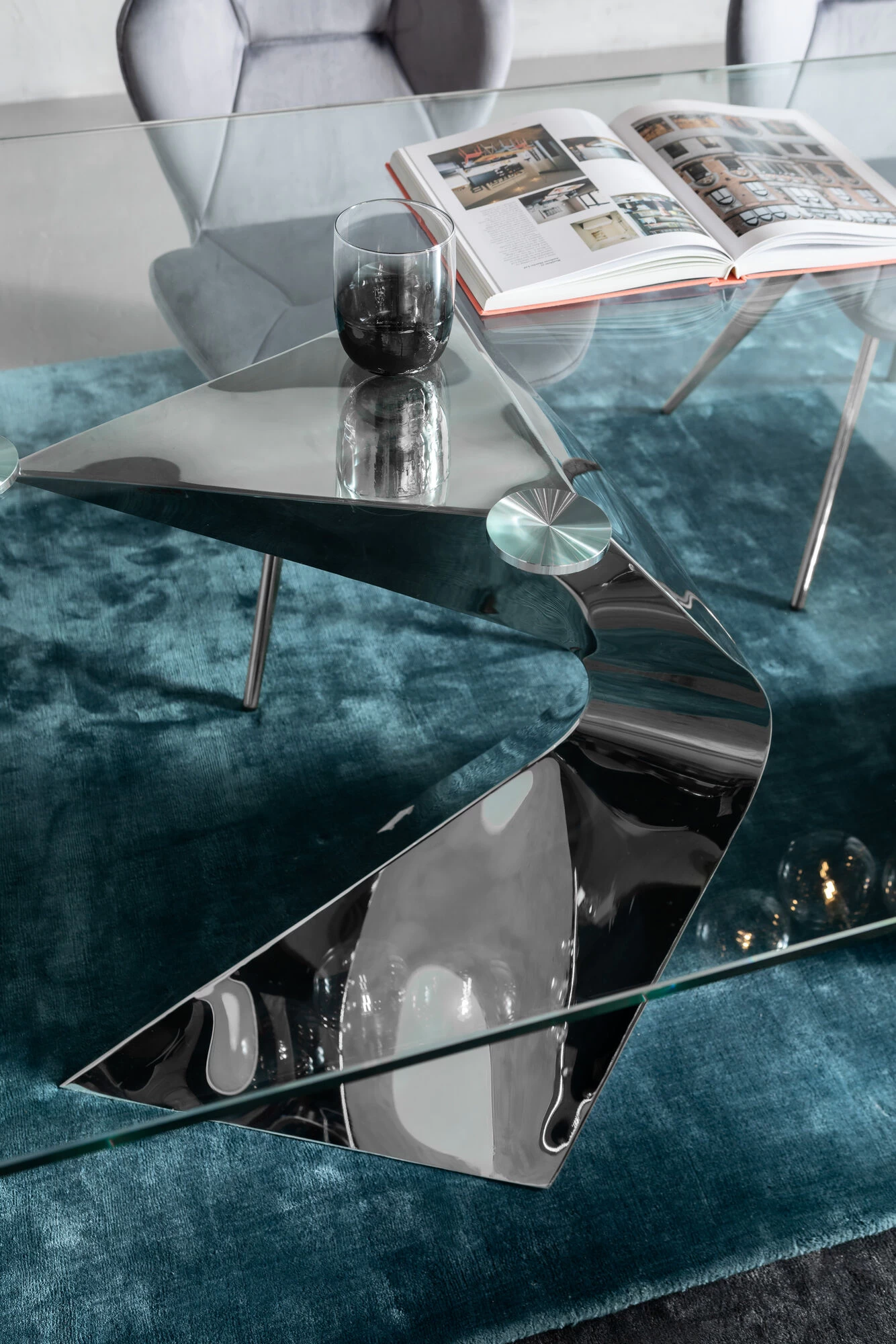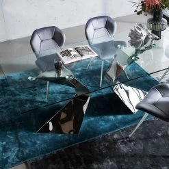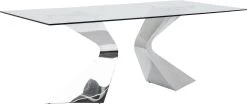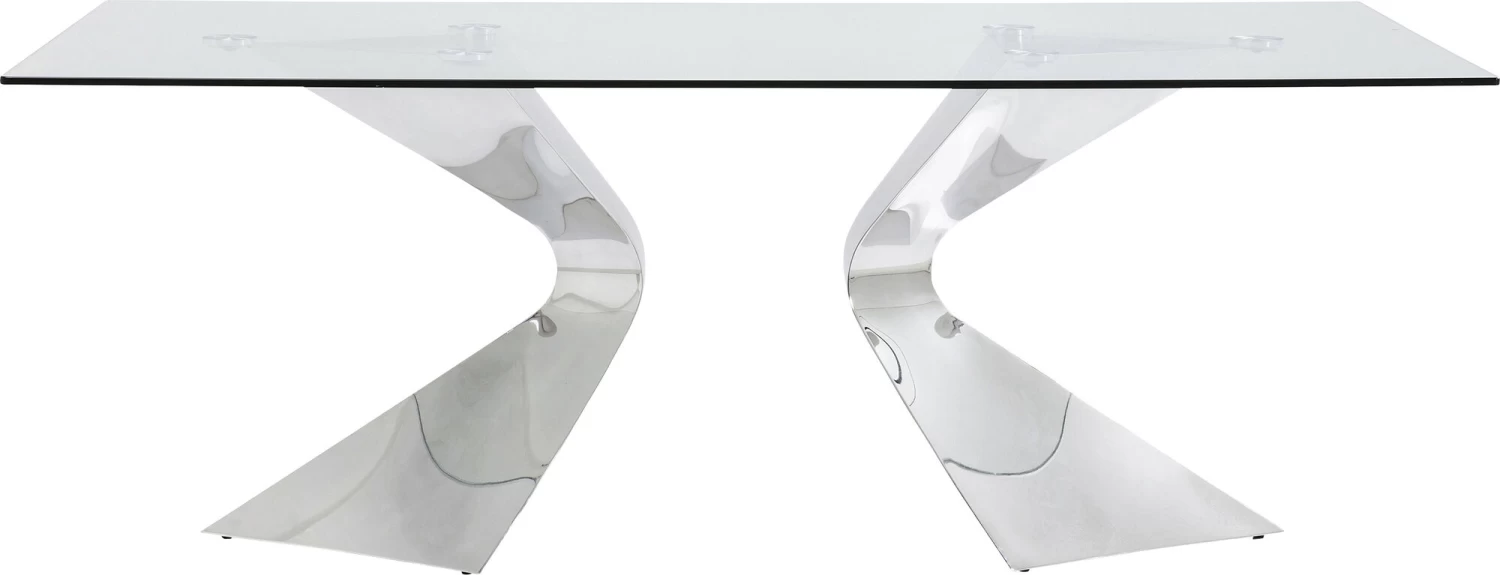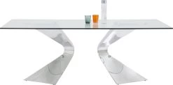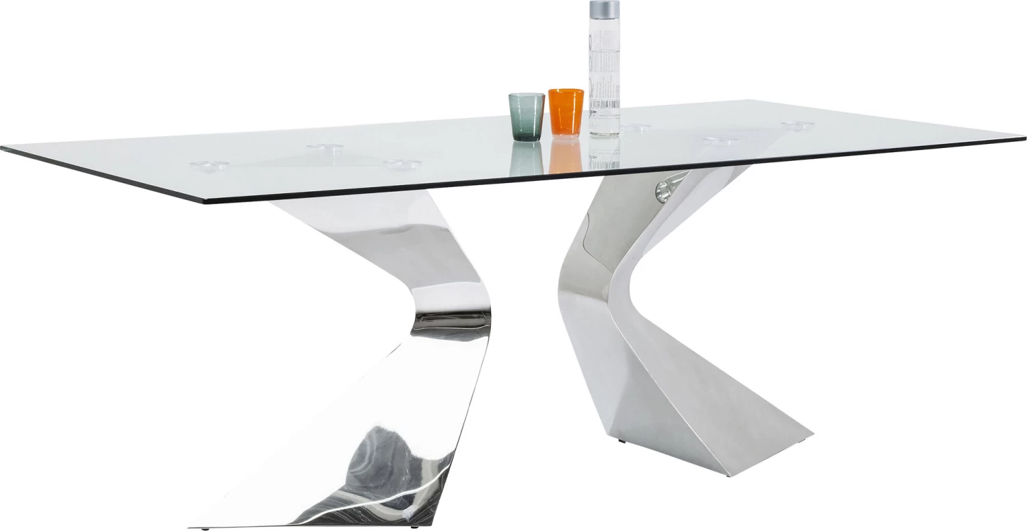 - Rechteckiger, großer Glastisch mit dekorativ geschwungenen Beinen aus veredeltem Edelstahl für 6-8 Personen