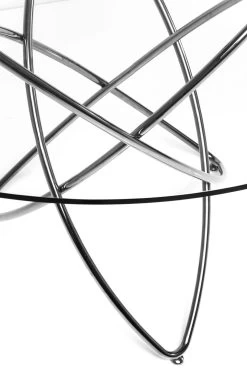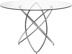 - Runder Tisch mit klarer ESG-Glasplatte und silberglänzendem Fuß, 76 x 120 x 120 Zentimeter (H/B/T)