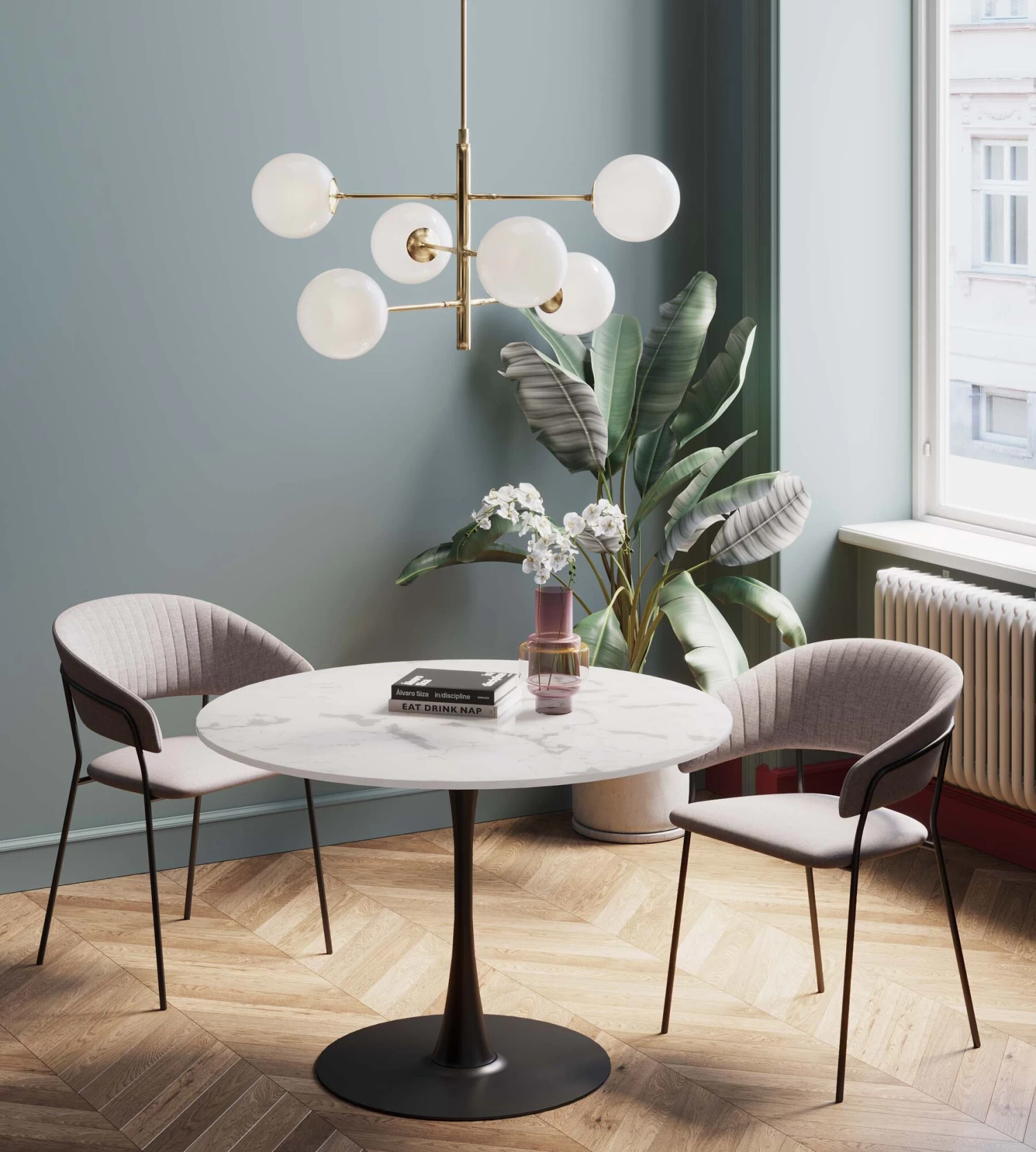 Tisch Schickeria Marmor Weiß Schwarz Ø110cm